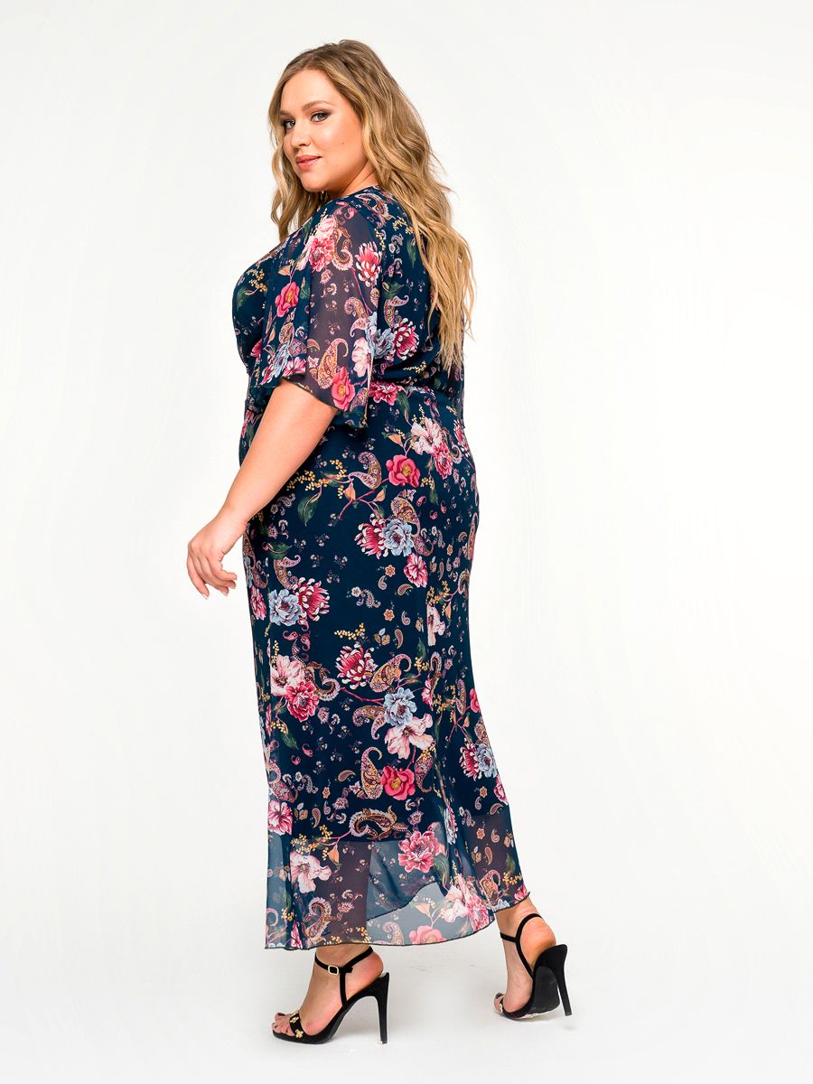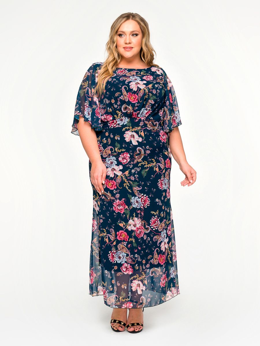 Платье из принтованого шифона с летяшим рукавом позволит каждой даме создать образ изысканный и неповторимый. Платье такого кроя удачно прячет имеющиеся особенности фигуры, подчеркивая  женственность
