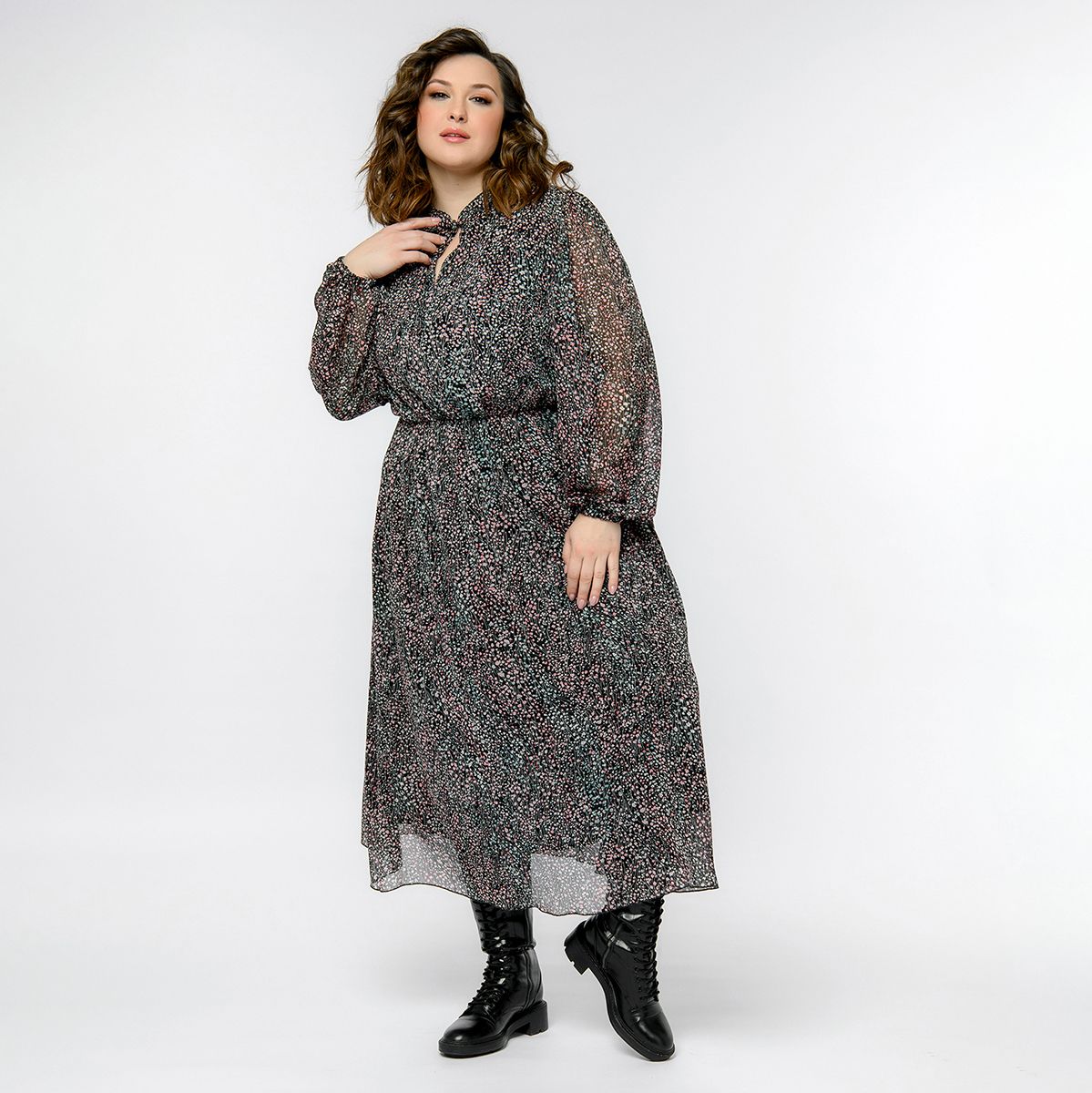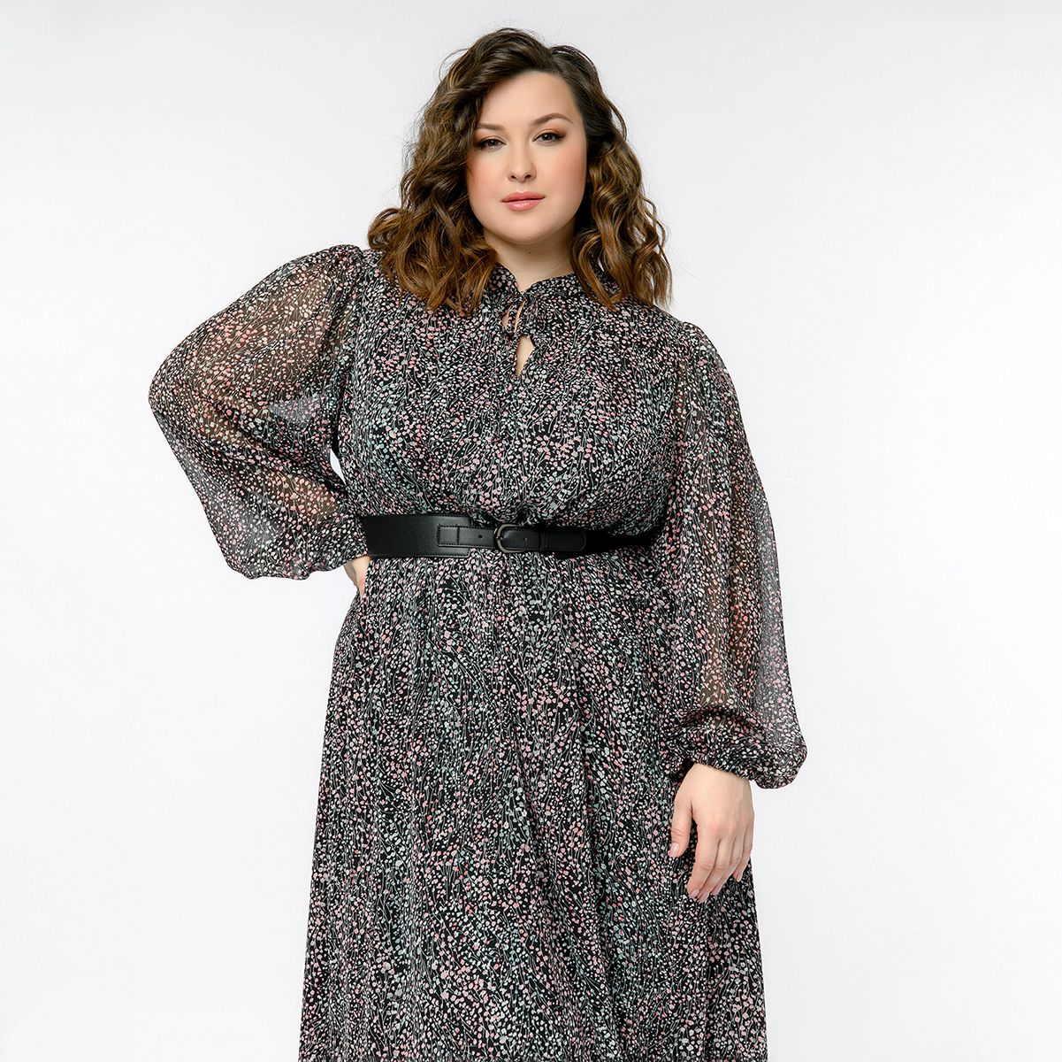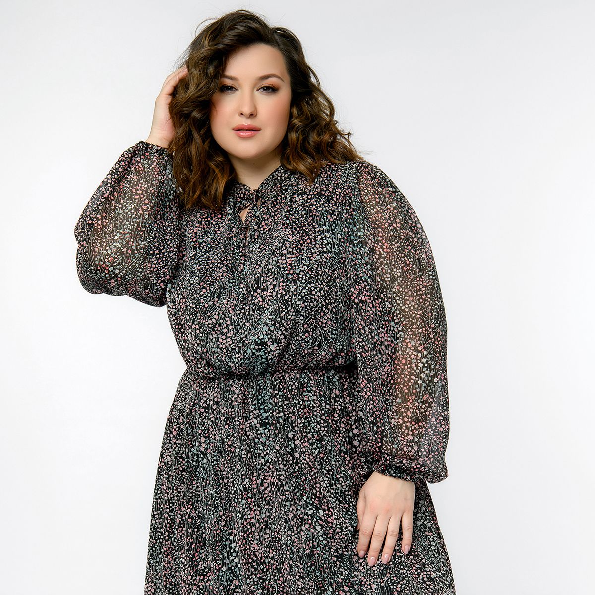 Платье из шифона с воротником "стоечка", мелкий принт на черном