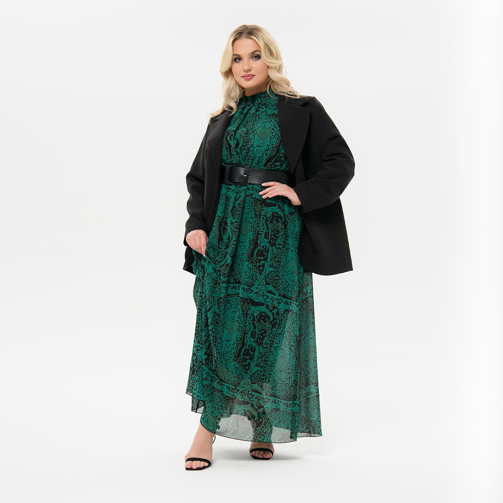 Платье из шифона с воротником "стоечка", принт изумрудный