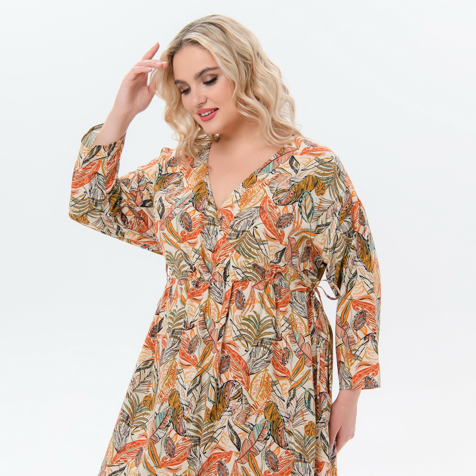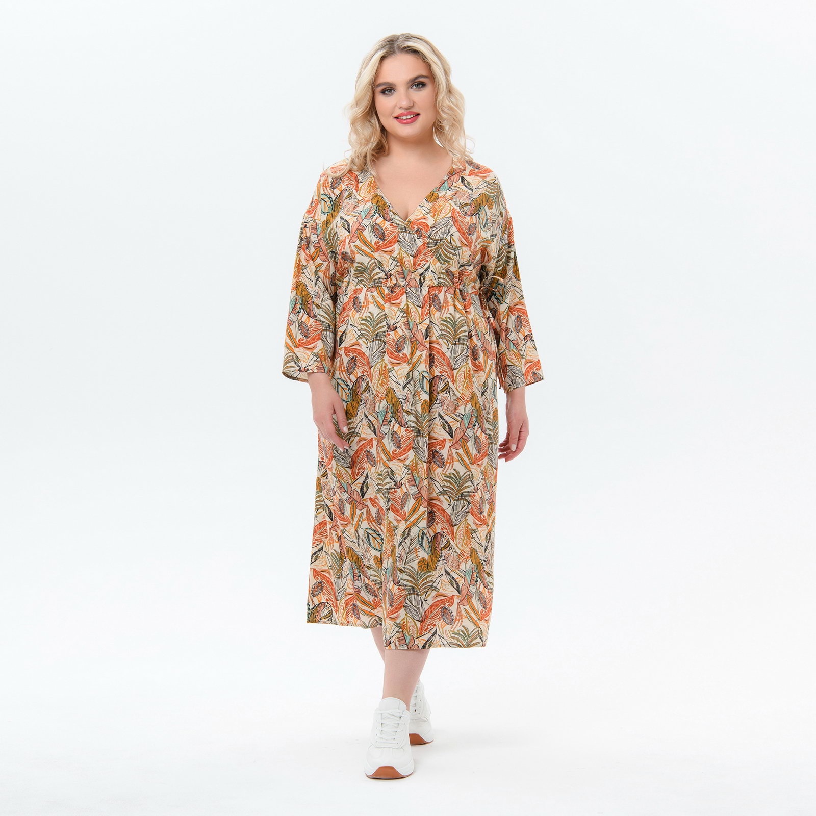 Легкое, оригинальное, свободное платье из 100% вискозы длиной миди. Верхняя часть переда с запАхом под линией груди.