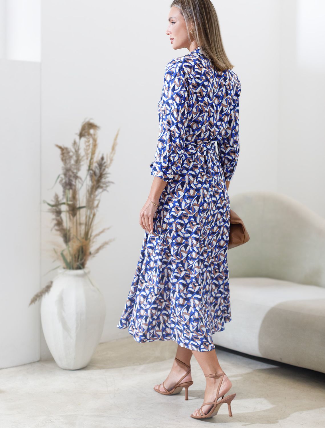 Платье выполнено из 100% вискозного твила. В комплект входит пояс из основного полотна с золотистой пряжкой. Модель дополнена карманами. Ткань приятно охлаждает кожу в жаркое время года и изящно струится при каждом движении.