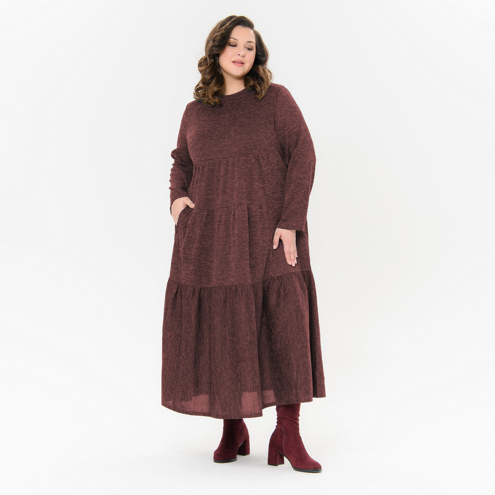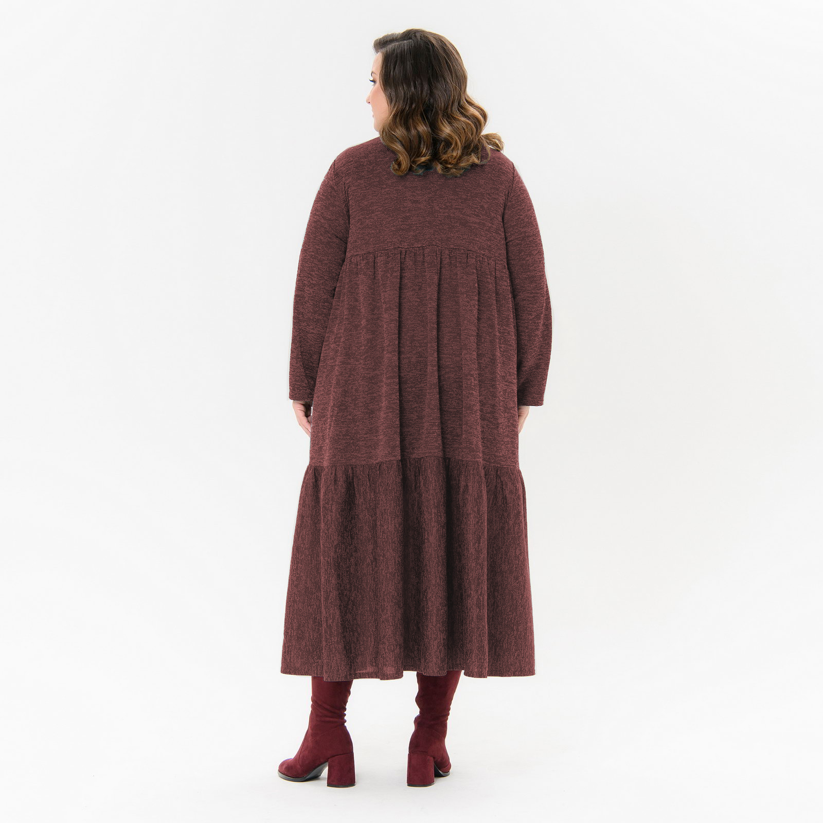 Платье свободного силуэта из меланжевого джерси. По центральной части переда 3 горизонтальных подреза, образующие сборку.