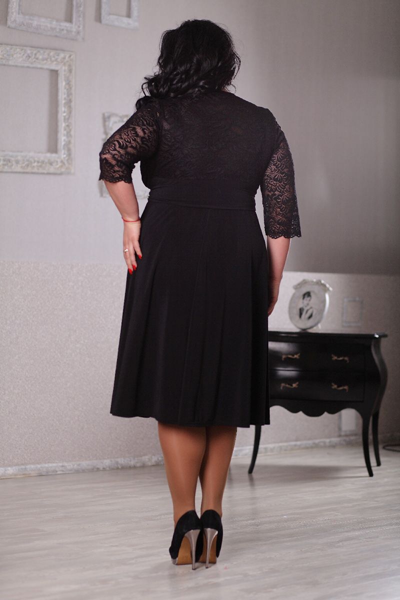 Черное коктейльное платье большого размера выгодно сможет выделить свою обладательницу из толпы приглашенных на вечеринку дам. Оно подчеркнет очарование ее округлой фигуры, пышность соблазнительных бедер и красоту высокой груди. Любая полная дама сможет почувствовать себя в таком платье для коктейлей самой стильной и неотразимой, сексуальной и привлекательной. Большое черное платье позволит пышнотелой красавице преподнести себя в самом выгодном свете, его удлиненное декольте привлечет пылкие взгляды всего мужского окружения, а легкая подчеркнутость талии вызовет у сильной половины неподдельный восторг.