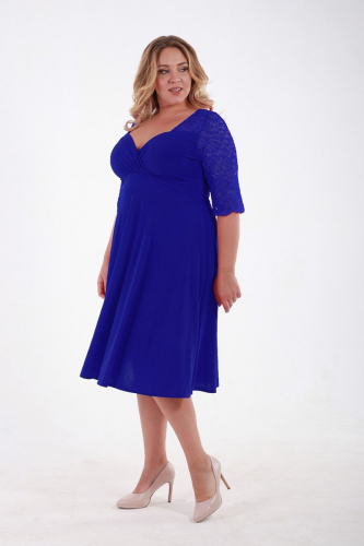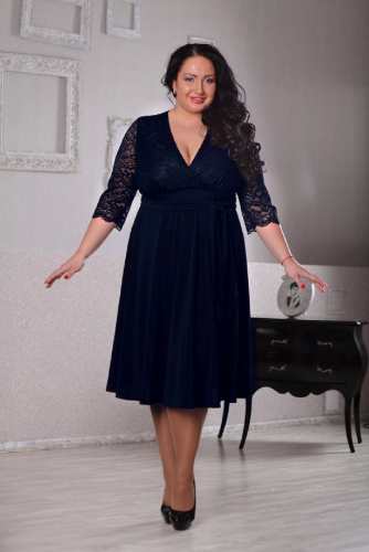 Эффектное коктельное платье прилегающего силуэта, расклешенное к низу. Кокетка и рукава 3/4 выполнены из кружева. Элегантность этой модели придает утонченное сочетание отделки кружевом и безупречность кроя. Данная модель прекрасный выбор для любого торжества, в нем Вы будите неотразимы.