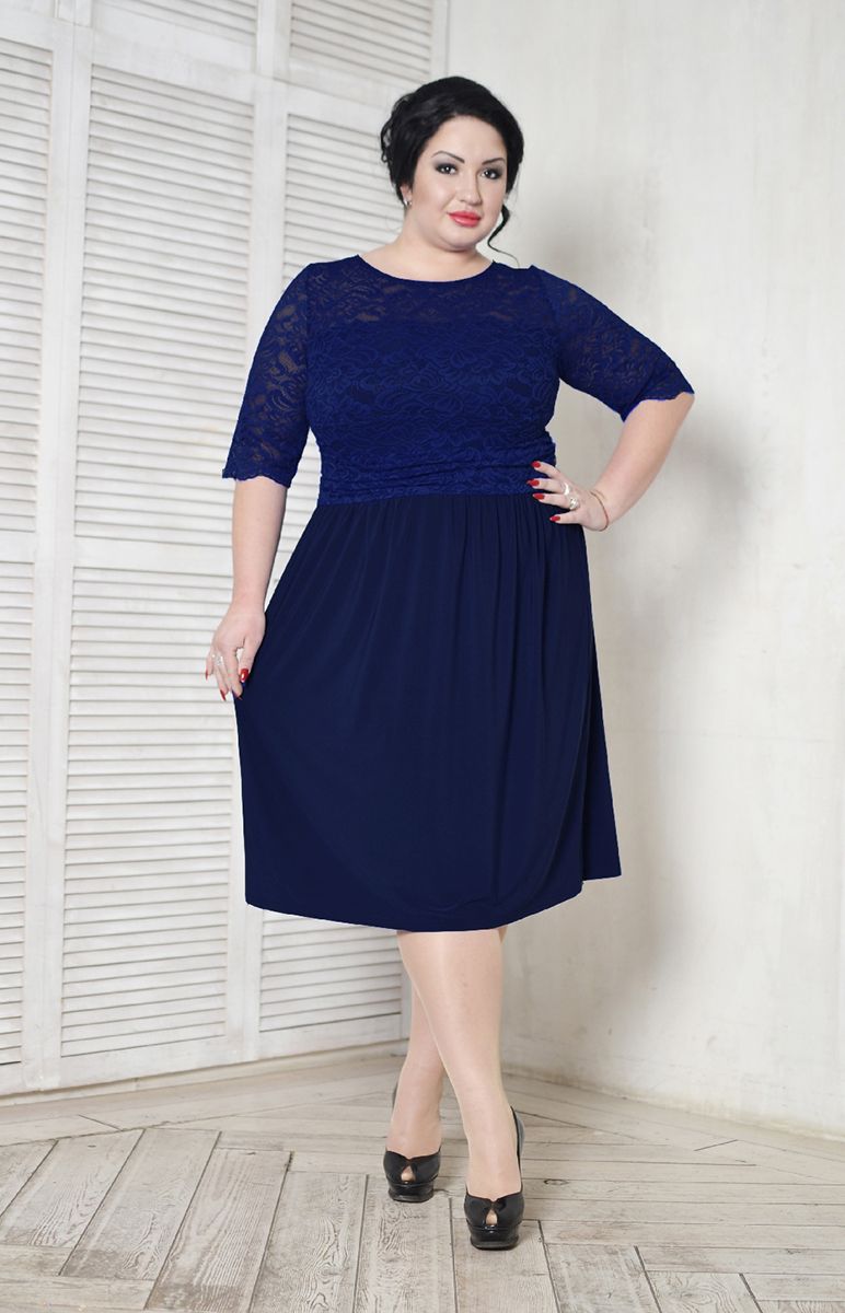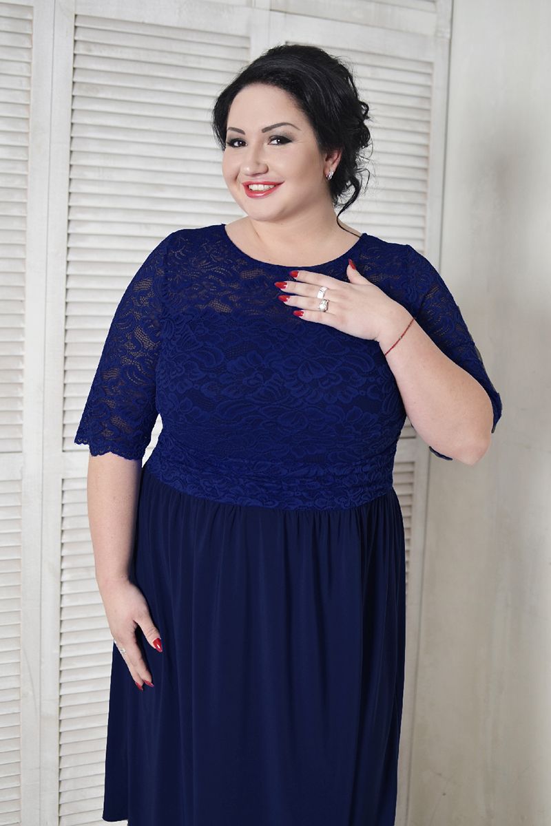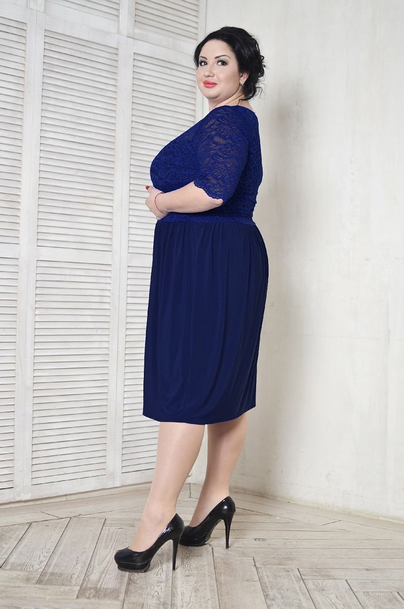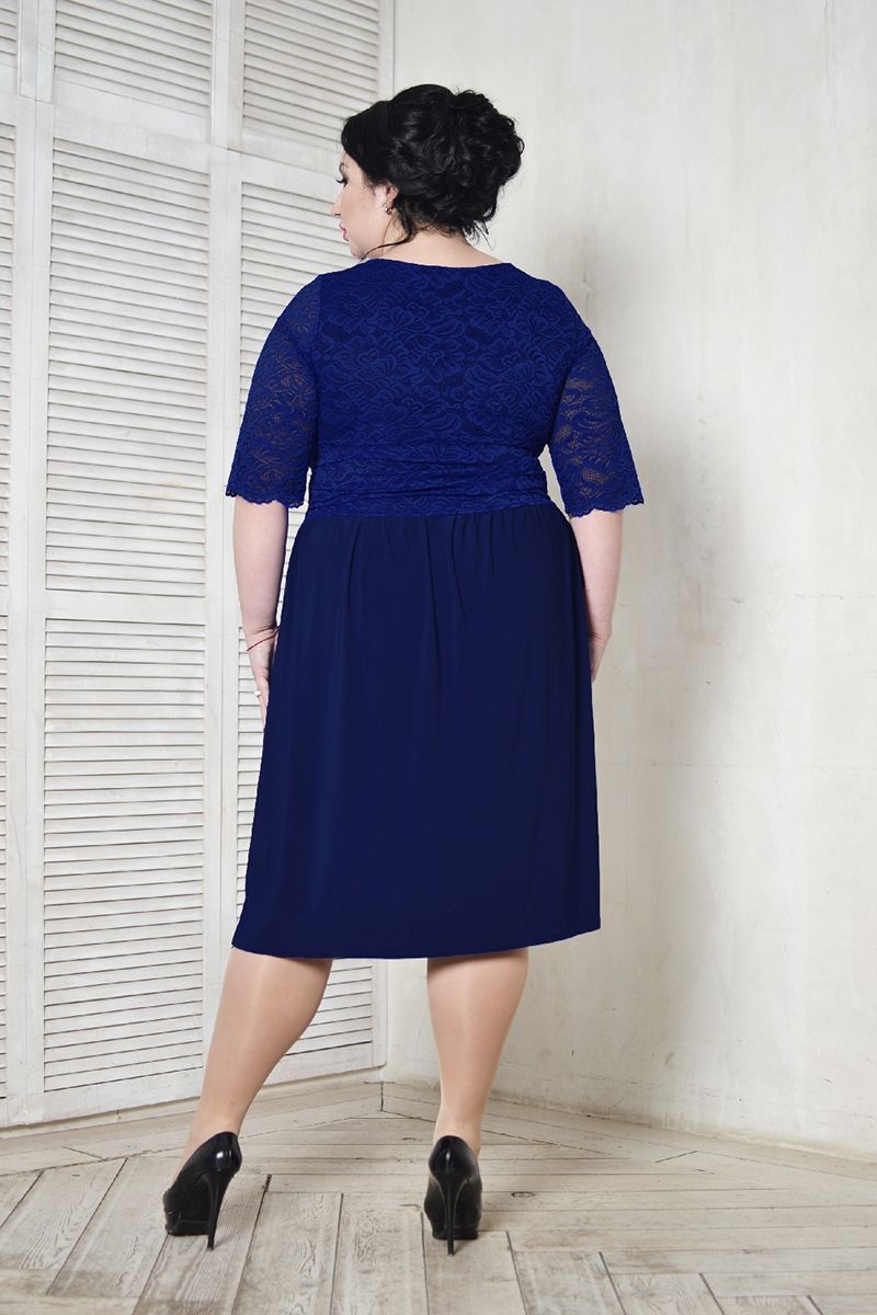 Платье коктельное с кружевом темно синее