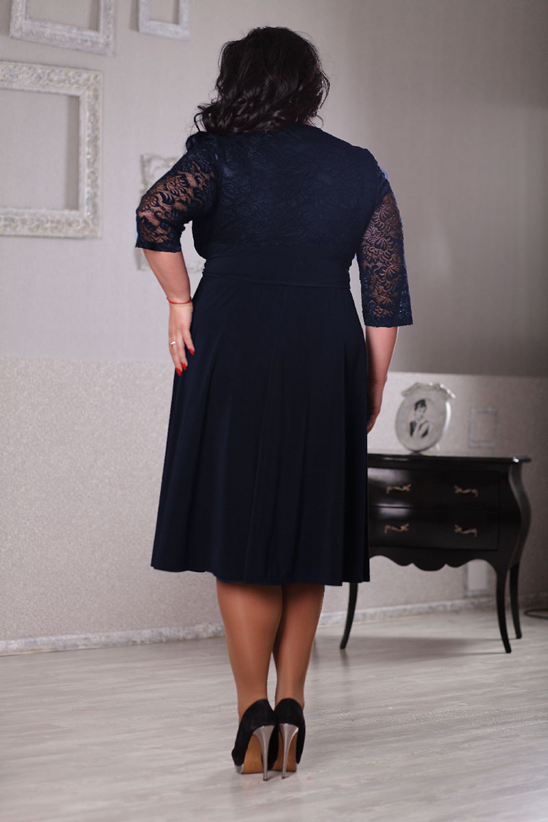Элегантное платье из легкого трикотажа оригинального кроя позволяет любой пышной даме выглядеть умопомрачительно на любом мероприятии – его притягательное декольте, оптимальная длина и нестандартный дизайн – это лучшее, что может быть в гардеробе любой пышки. В таком черном платье большого размера каждая пышнотелая представительница прекрасного пола сможет почувствовать себя самой красивой и желанной, ей будет в нем комфортно и удобно. Большое черное трикотажное платье станет великолепным нарядом для торжества, прогулки, важной и ответственной встречи, создаст стильный образ, наполненный женской уверенностью в своей неотразимости.