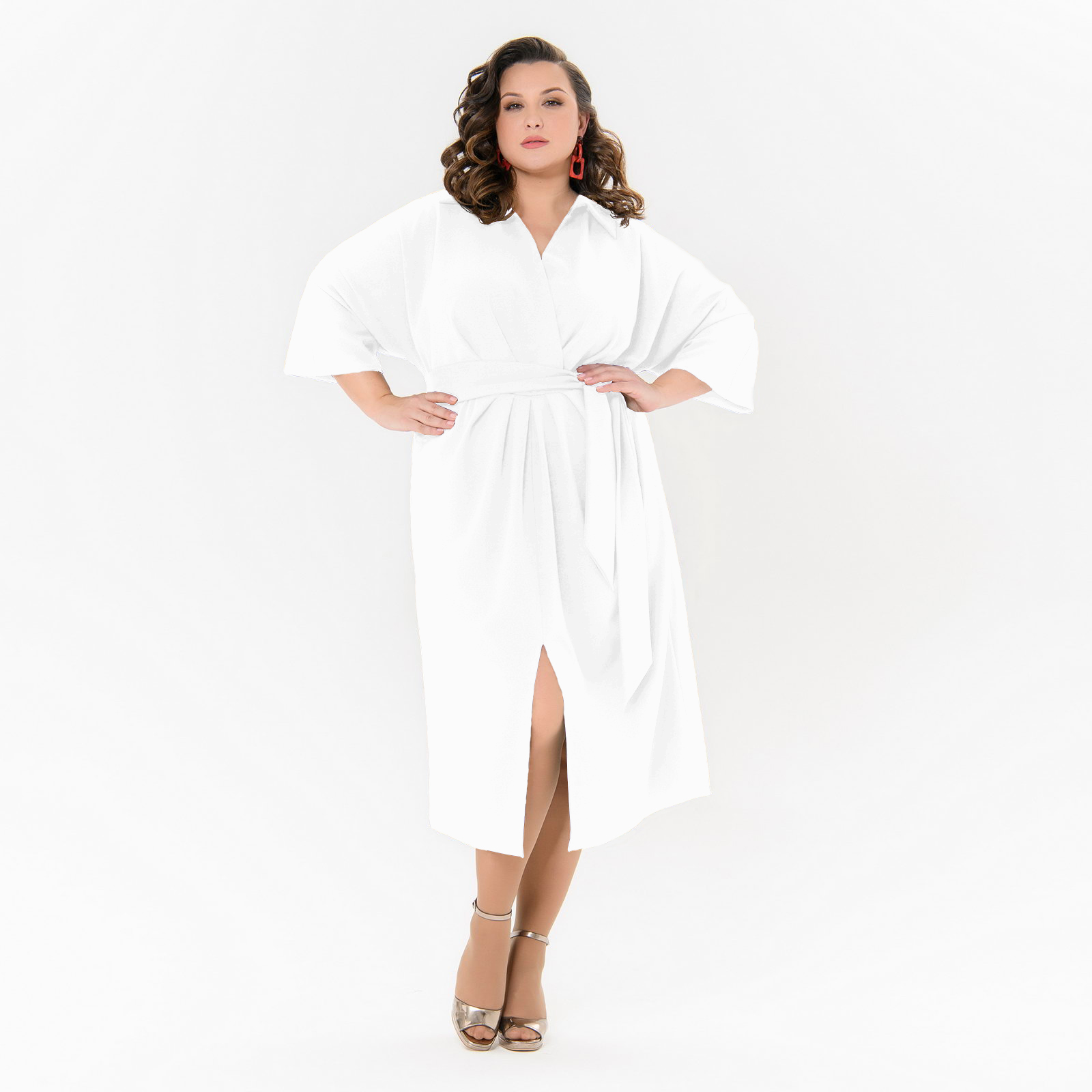 Платье коктейльное с цельнокроеным рукавом, креп с эластаном белый