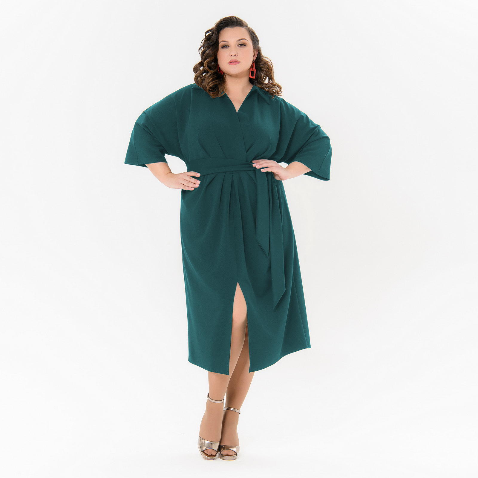 Платье отрезное по линии талии. Лиф выполнен с запАхом и мягкими складками. Наклонное направление складок позволяет зрительно сузить силуэт.