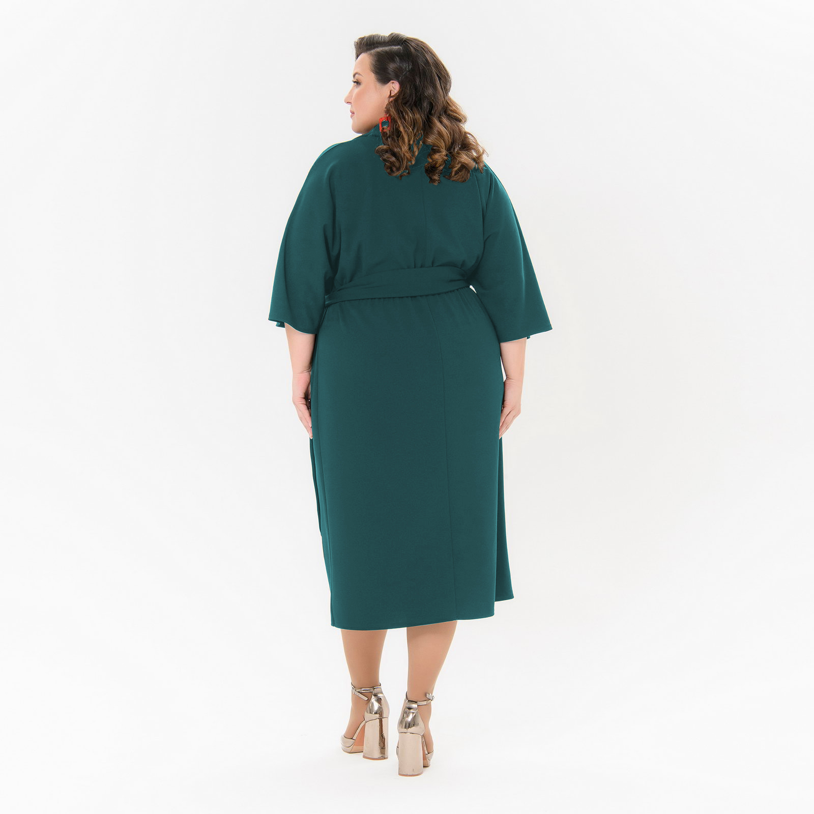Рукав цельнокроеный, свободный. По горловине платья - рубашечный воротник.