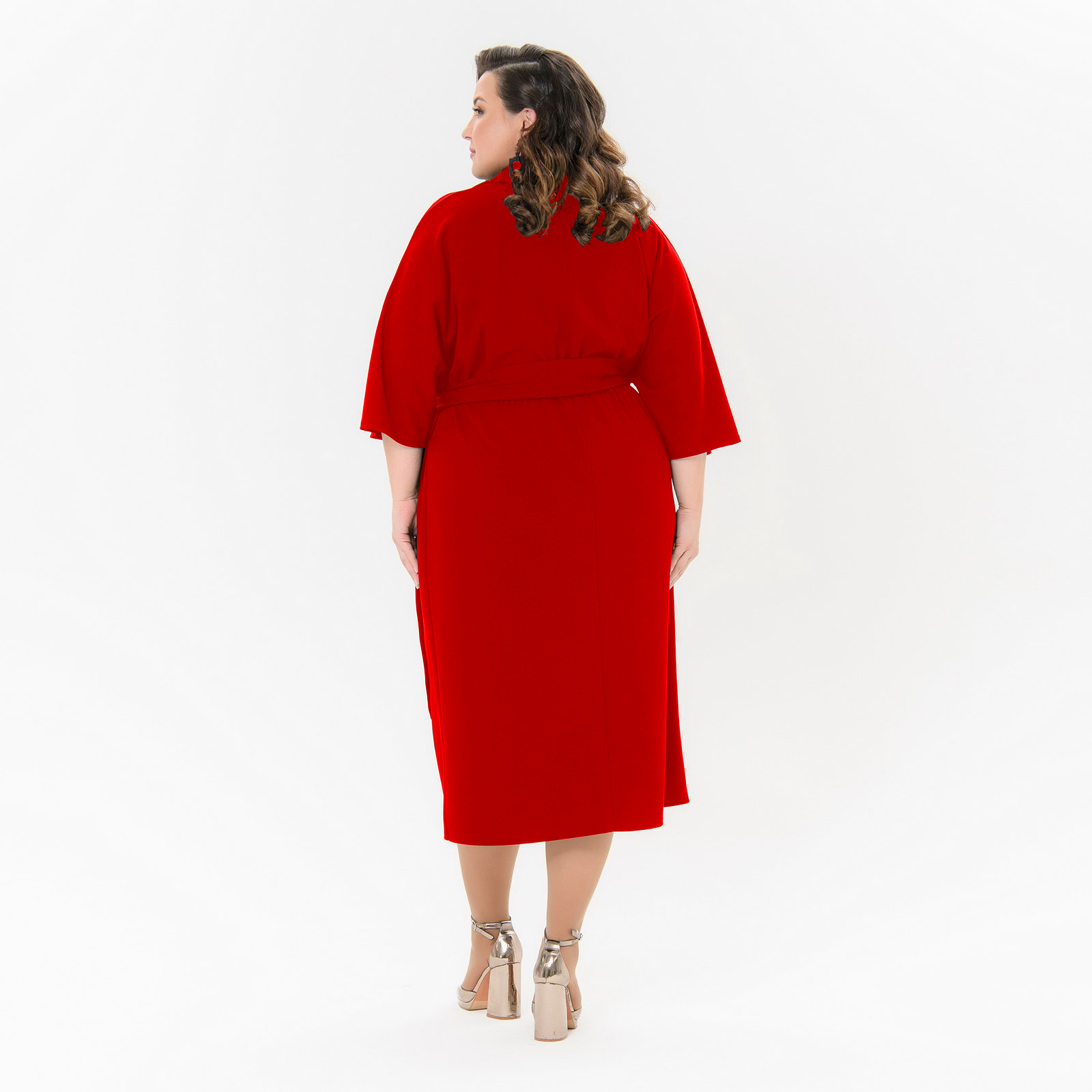 Рукав цельнокроеный, свободный. По горловине платья - рубашечный воротник.