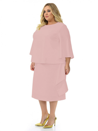 Элегантное платье с эффектом костюма. Нижняя часть(юбка) пришивается к подкладке верхней части. Вырез горловины округлый.