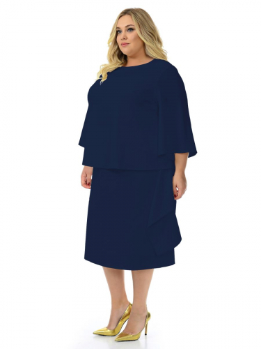 Элегантное платье с эффектом костюма. Нижняя часть(юбка) пришивается к подкладке верхней части. Вырез горловины округлый.