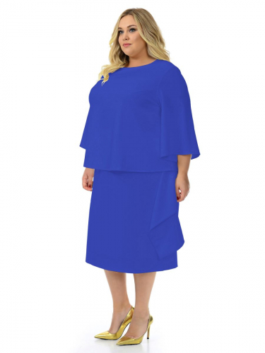 Элегантное платье с эффектом костюма. Нижняя часть(юбка) пришивается к подкладке верхней части. Вырез горловины округлый.