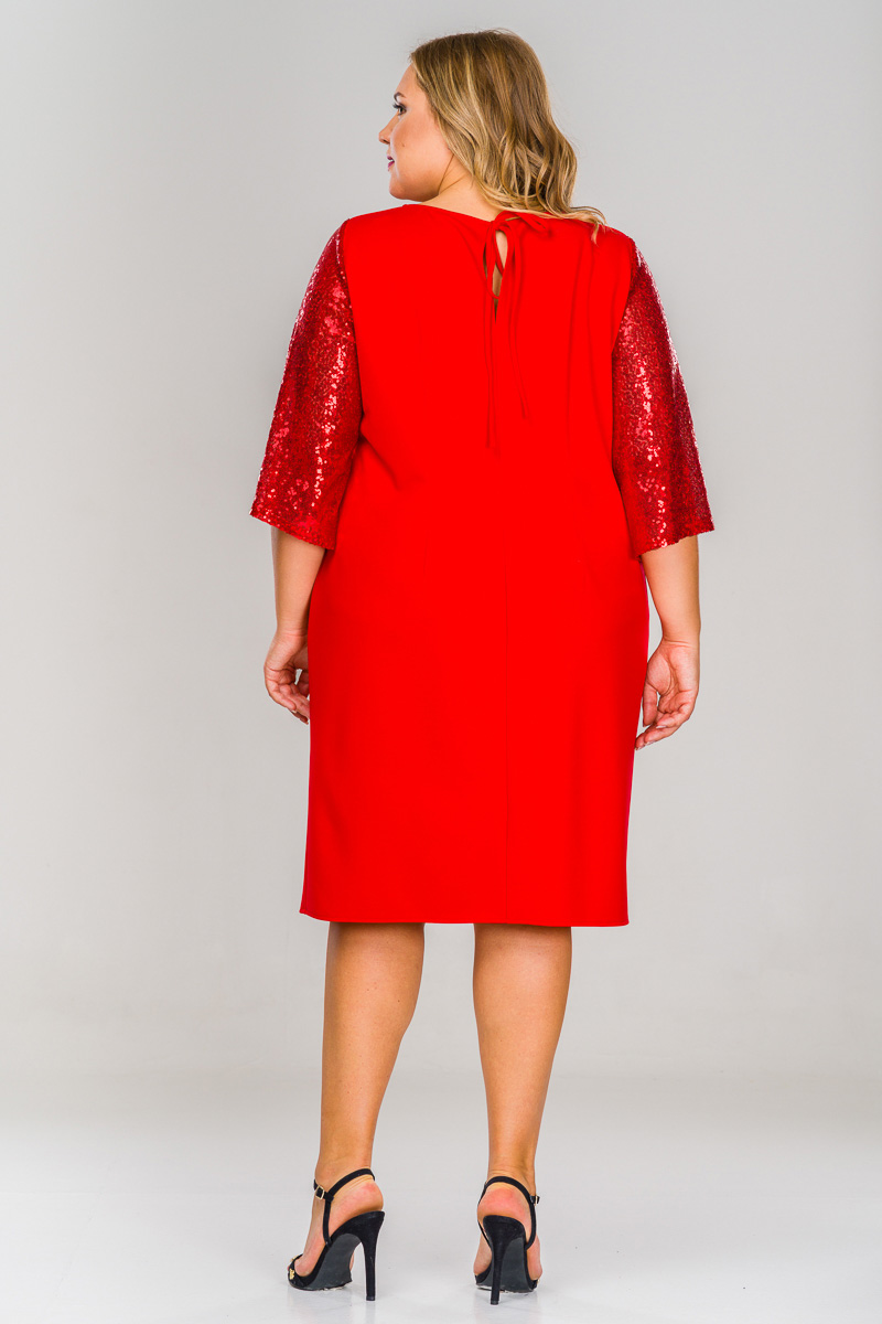 Платье креп с рукавом из пайеток, красное