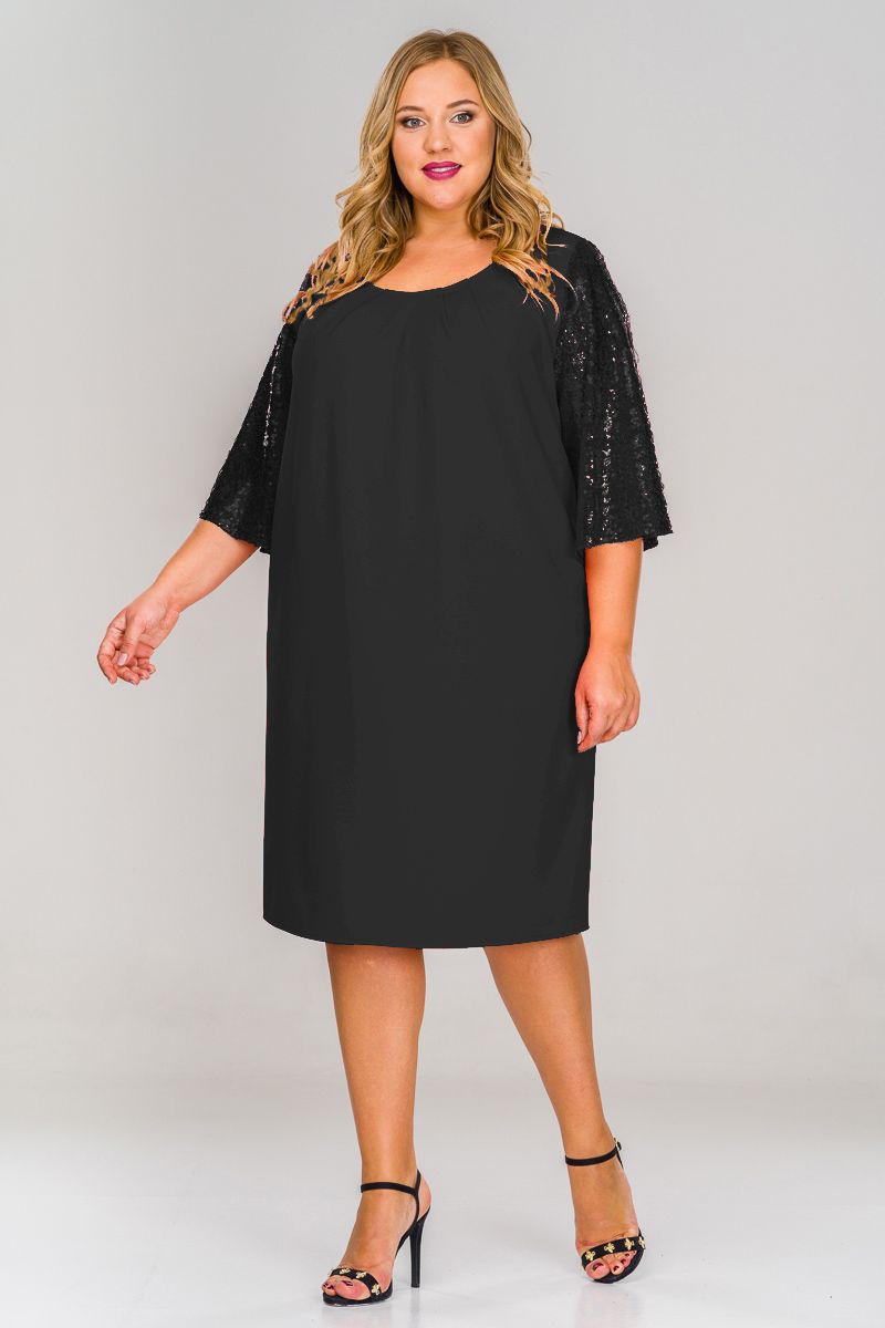 Платье креп с широким рукавом из пайеток, черное