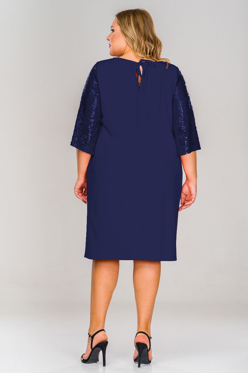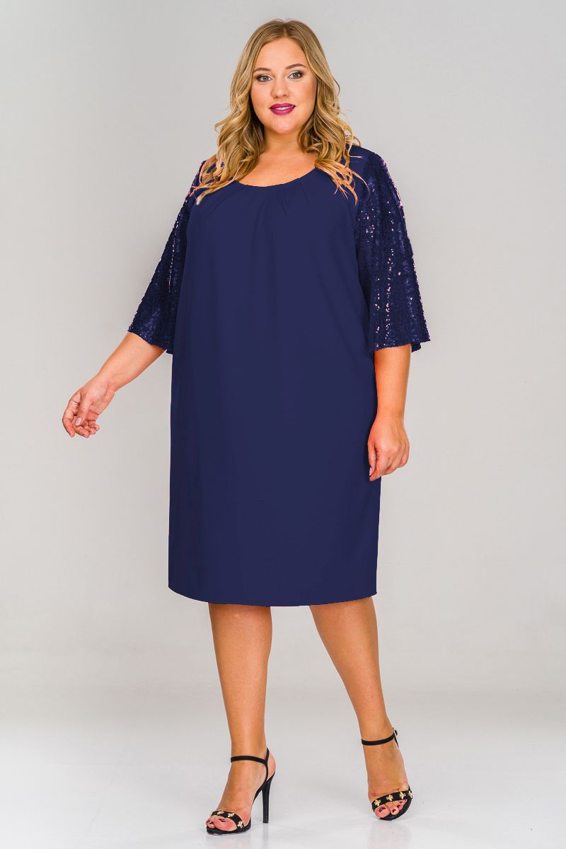 Элегантное коктельное платье полуприлегающего силуэта. Широкий рукав из пайеток делает его особенно нарядным.