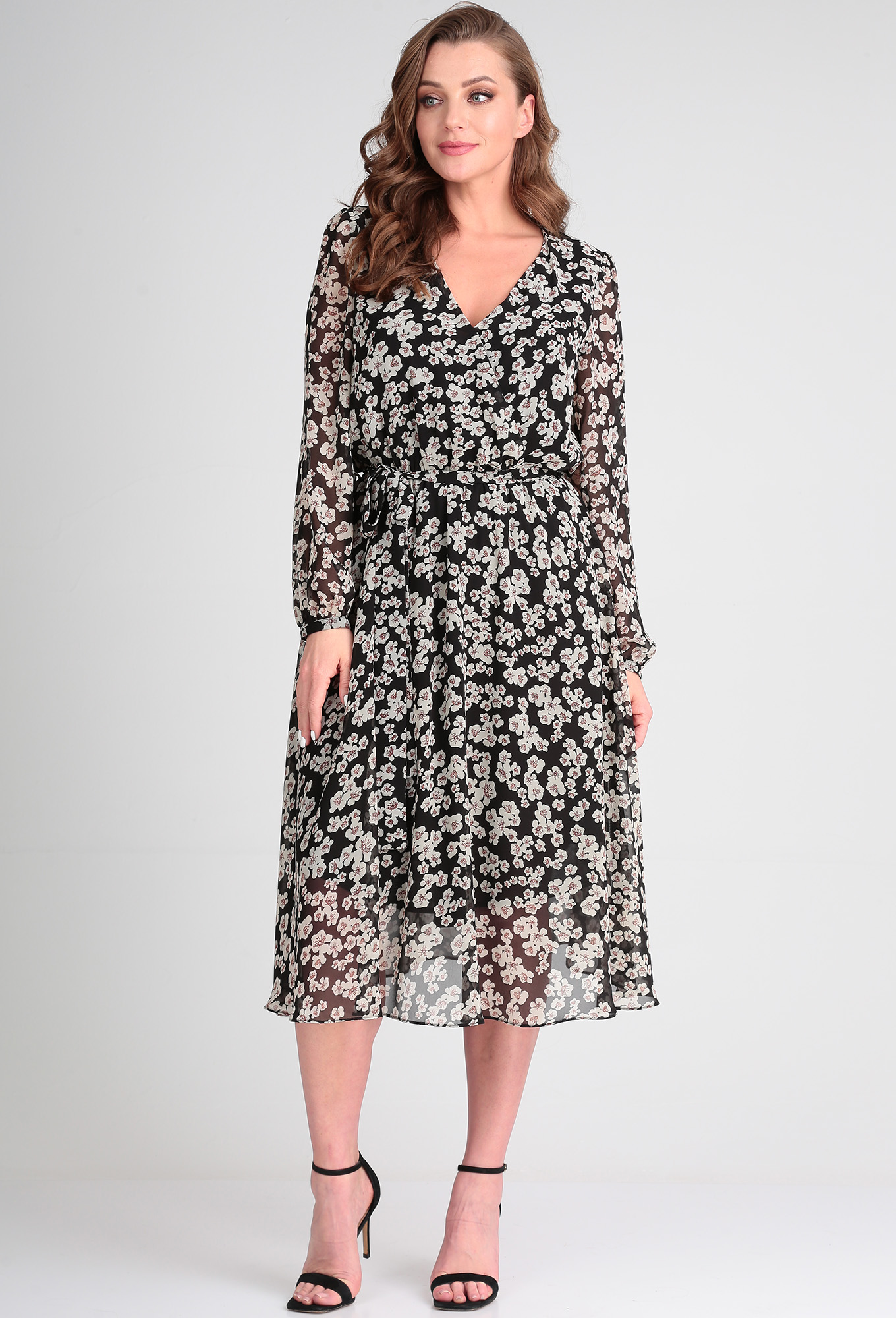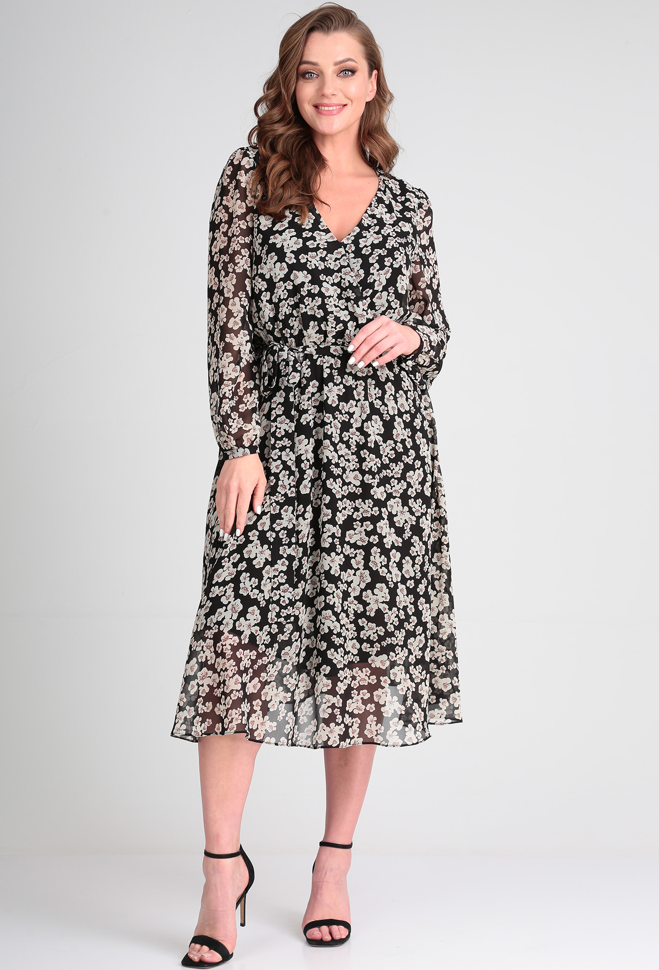 ст. цена2499руб.! Платье Lady Line 522 черный цветы