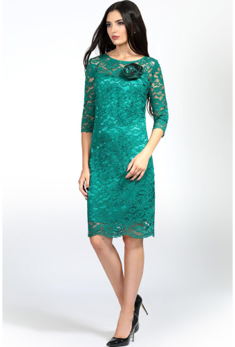 Платье из мягкого шифона на трикотажной подкладке из вискозы. Рукав длинный по окату на сборке. По низу рукава пришит манжет с застёжкой на одну петлю и пуговицу. По переду платье с запахом, по линии талии отрезное. Юбка полусолнце. По талии пришита мягкая эластичная тесьма. В дополнение в платье длинный съёмный пояс.