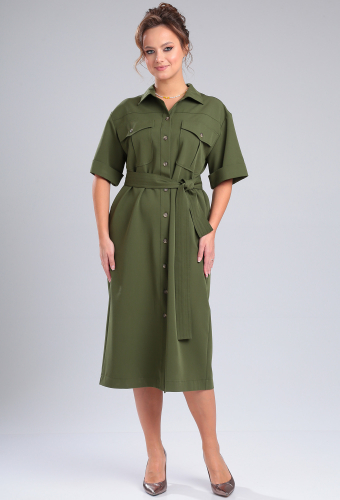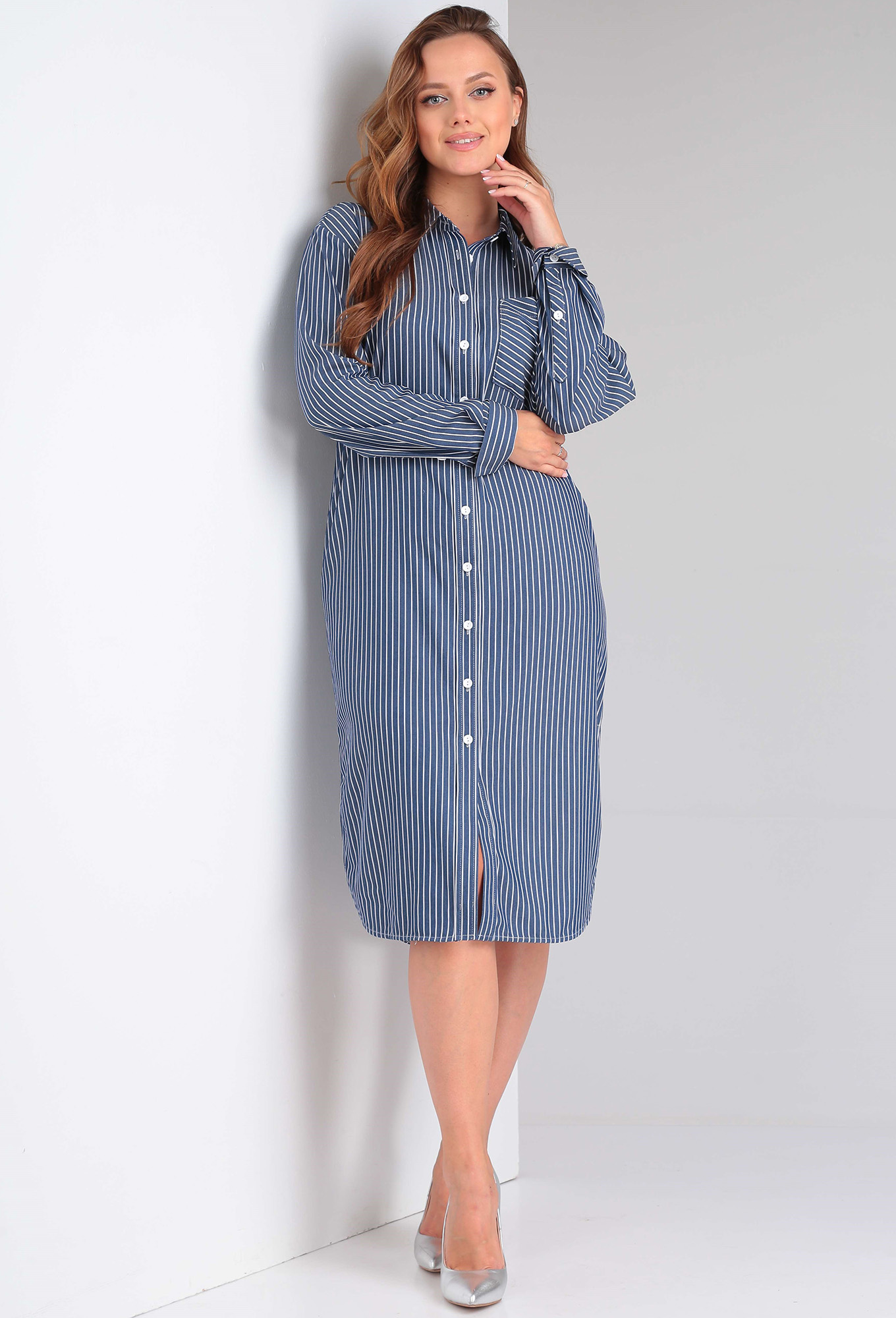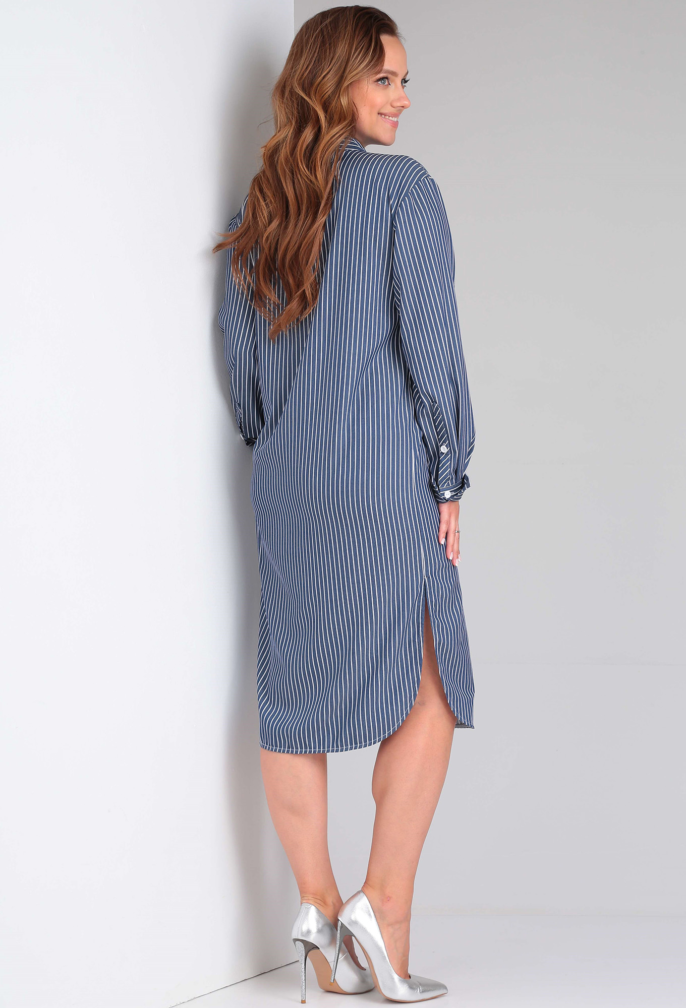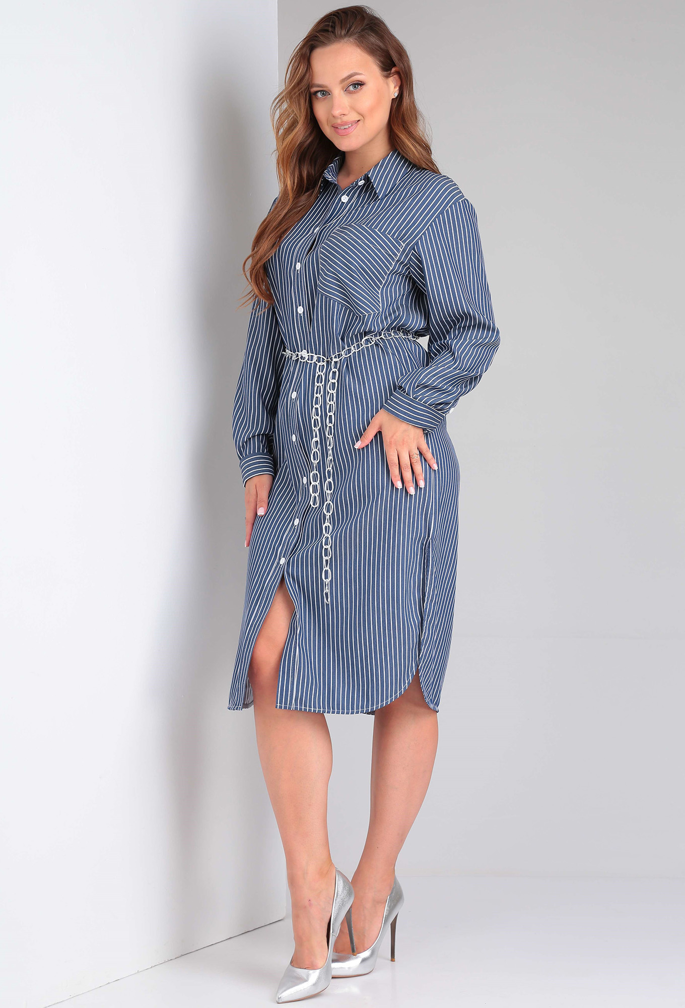 Платье-рубашка их натуральной ткани хлопка прямого силуэта. По переду застёжка на 11 петель и пуговиц. Планка цельнокроенная, на левой полочке функциональный карман. Воротник на стойке. Рукав одношовный. Плечо приспущенное. Шлица рукава обработана планкой, планка застёгивается на пуговицу. Низ платья-рубашки с закруглёнными краями к боковым швам, окантован декоративной тесьмой и обработан в чистый край. Линию талии в платье- рубашке можно подчеркнуть с помощью съёмного пояса из цепочки, который регулируется с помощью застёжки которая фиксируется крючком-карабином на тот обхват который вам необходим. Цепочка входит в комплект платья-рубашки.