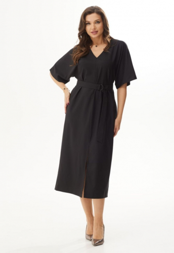 Платье полуприлегаюшего силуэта из мягкого и комфортного трикотажного полотна. Горловина с цельнокроенной стойкой. Рукав втачной с декоративным разрезом. По переду шов.В комплект входит съемный ремень. Обращаем ваше внимание, что фурнитура может незначительно отличаться от фото.