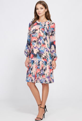 Платье из трикотажной ткани в трендовой расцветке "ёлочка" - прекрасно подойдет как для мероприятий, так и для повседневной работы в офисе. Горловина представляет собой соединение основной ткани с довязом и переходит в обработанный шарф. Рукав цельнокроеный "летучая мышь" переходит в рельефы платья. По спинке выполнена шаговая шлица. Изделие отлично сочетается с разной по стилю обувью и верхней одеждой. Длина изделия по спинке 103 см (+-1 см), длина рукава от горловины 52 см (+1 см). Изделие подойдет на рост 170 см.