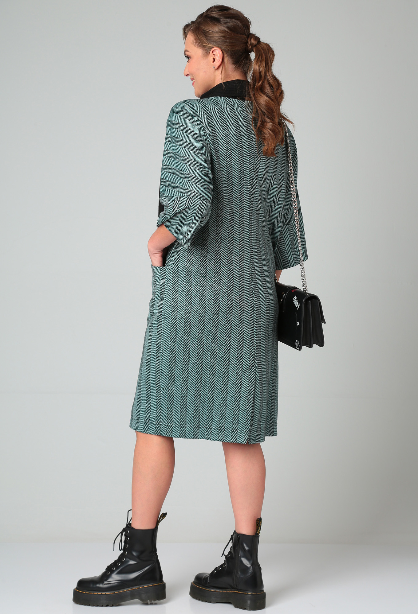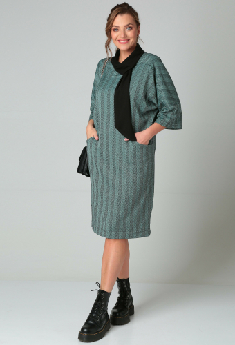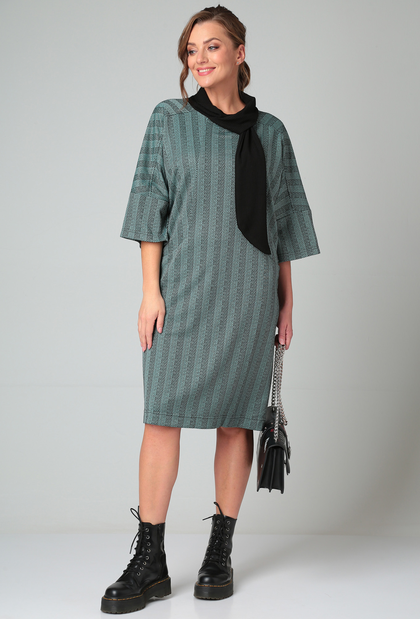 Платье из трикотажной ткани в трендовой расцветке "ёлочка" - прекрасно подойдет как для мероприятий, так и для повседневной работы в офисе. Горловина представляет собой соединение основной ткани с довязом и переходит в обработанный шарф. Рукав цельнокроеный "летучая мышь" переходит в рельефы платья. По спинке выполнена шаговая шлица. Изделие отлично сочетается с разной по стилю обувью и верхней одеждой. Длина изделия по спинке 103 см (+-1 см), длина рукава от горловины 52 см (+1 см). Изделие подойдет на рост 170 см.