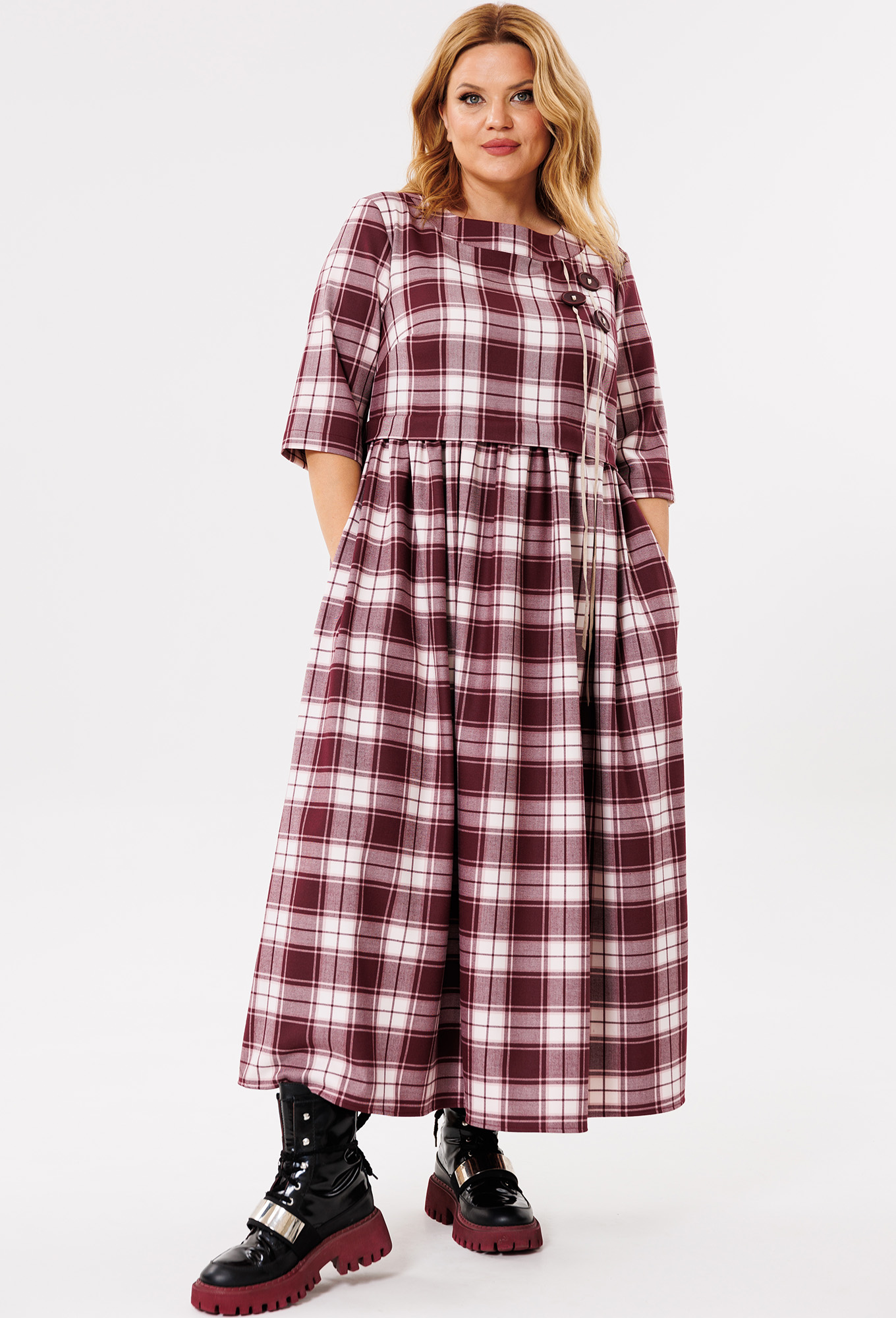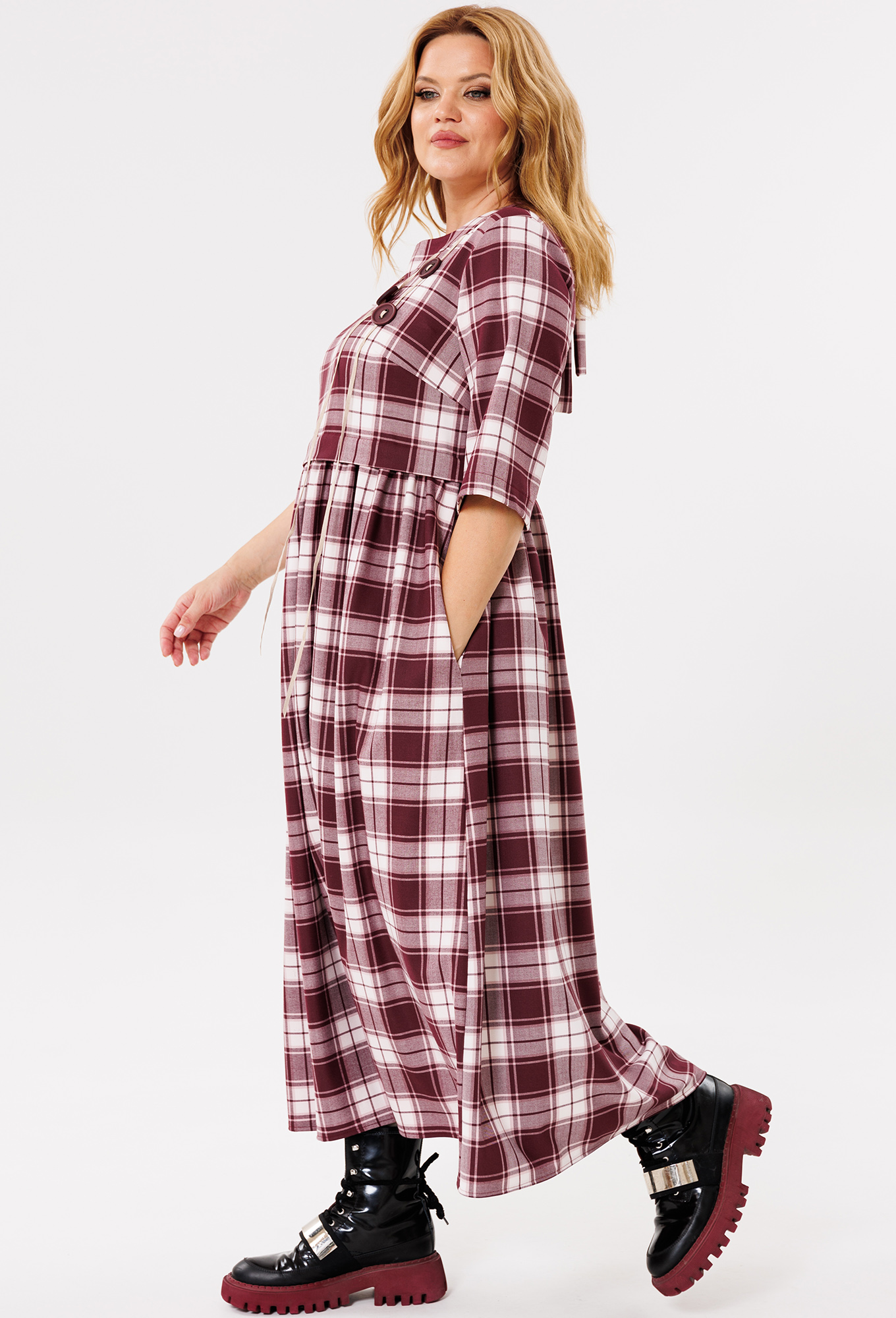 Актуальное длинное платье оригинального кроя — отличное решение для межсезонной погоды, для будней и для торжеств. Платье выполнено из струящейся, приятной на ощупь ткани с содержанием вискозы. Верх изделия с завышенной талией, округлой горловиной, которая на спинке украшена завязкой. Рукав втачной 3/4. По переду изделие украшено декоративными завязками с пуговицами. Низ платья свободного летящего кроя с боковыми карманами, по талии сборка.