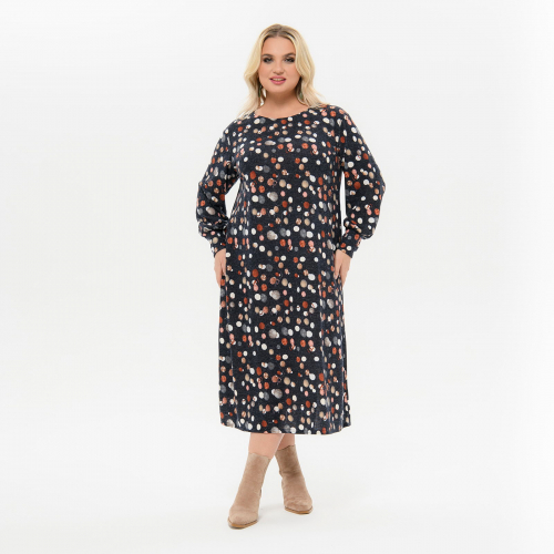 Платье свободное, А - силуэта, немного расширенное по бедрам, из джерси средней плотности, имитирующего ангору.