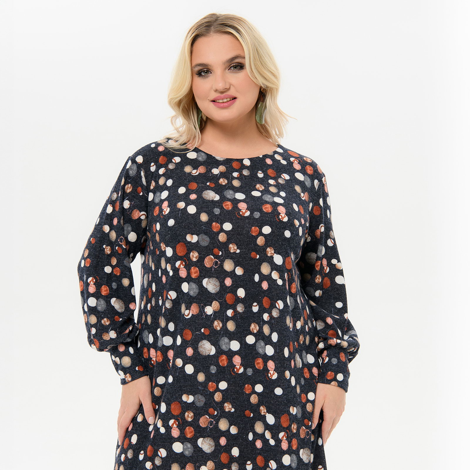 Платье выполнено из артикула джерси, имитирующего ангору.