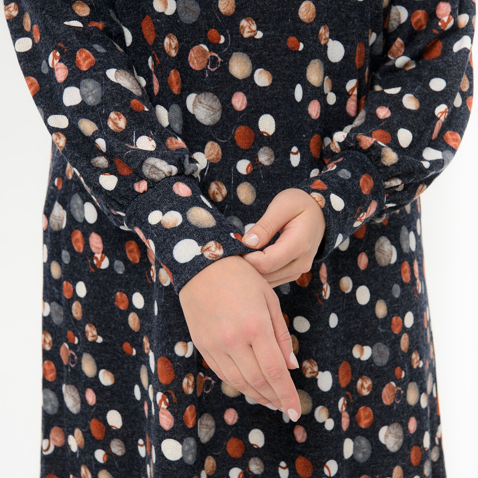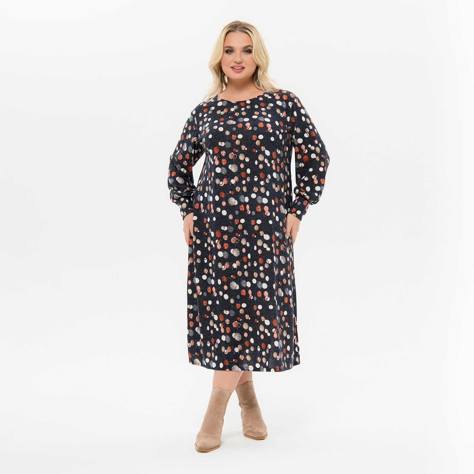 Платье миди А - силуэта, джерси - ангора, принт "праздник" *