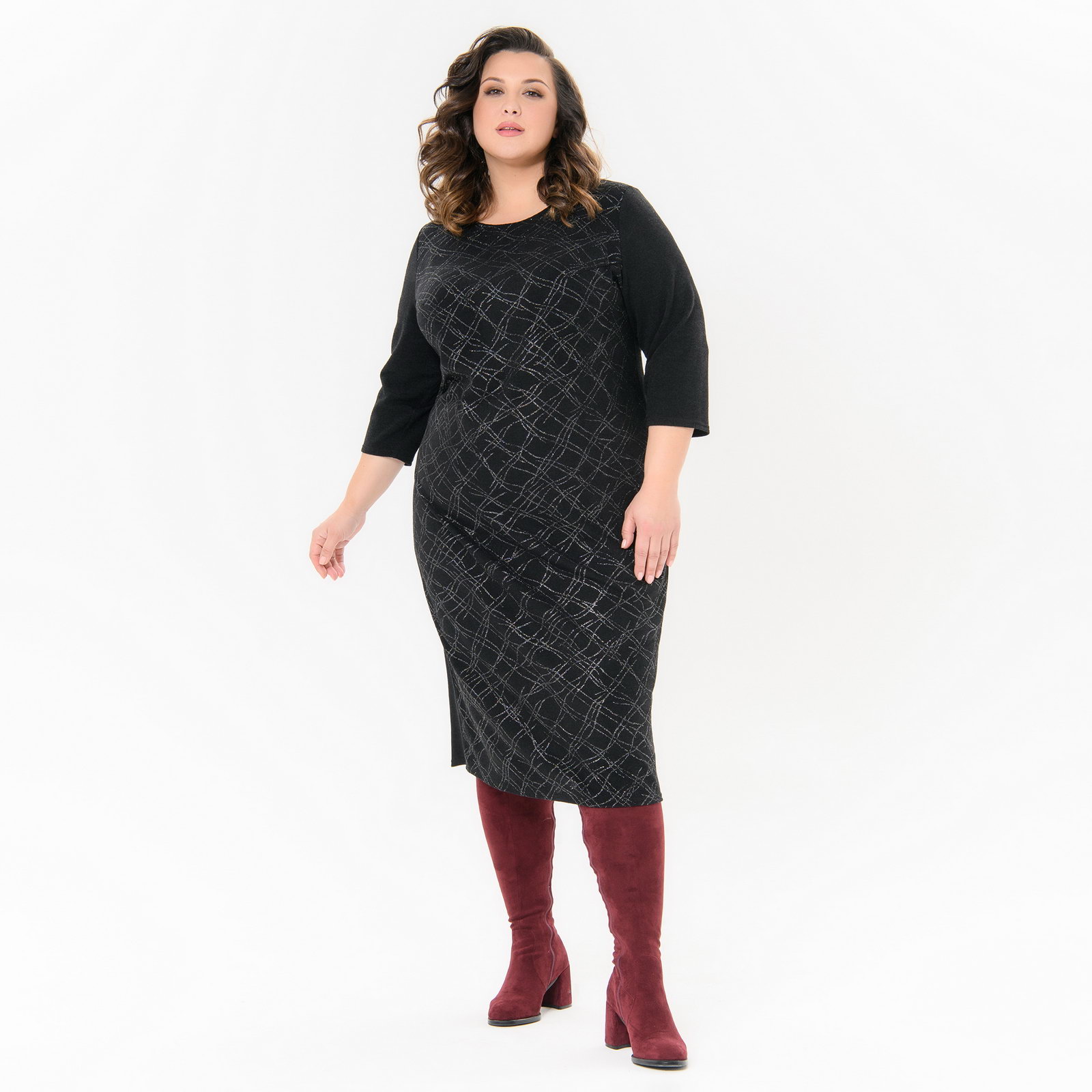 Платье полуприлегающего силуэта из джерси средней плотности, имитирующего ангору.