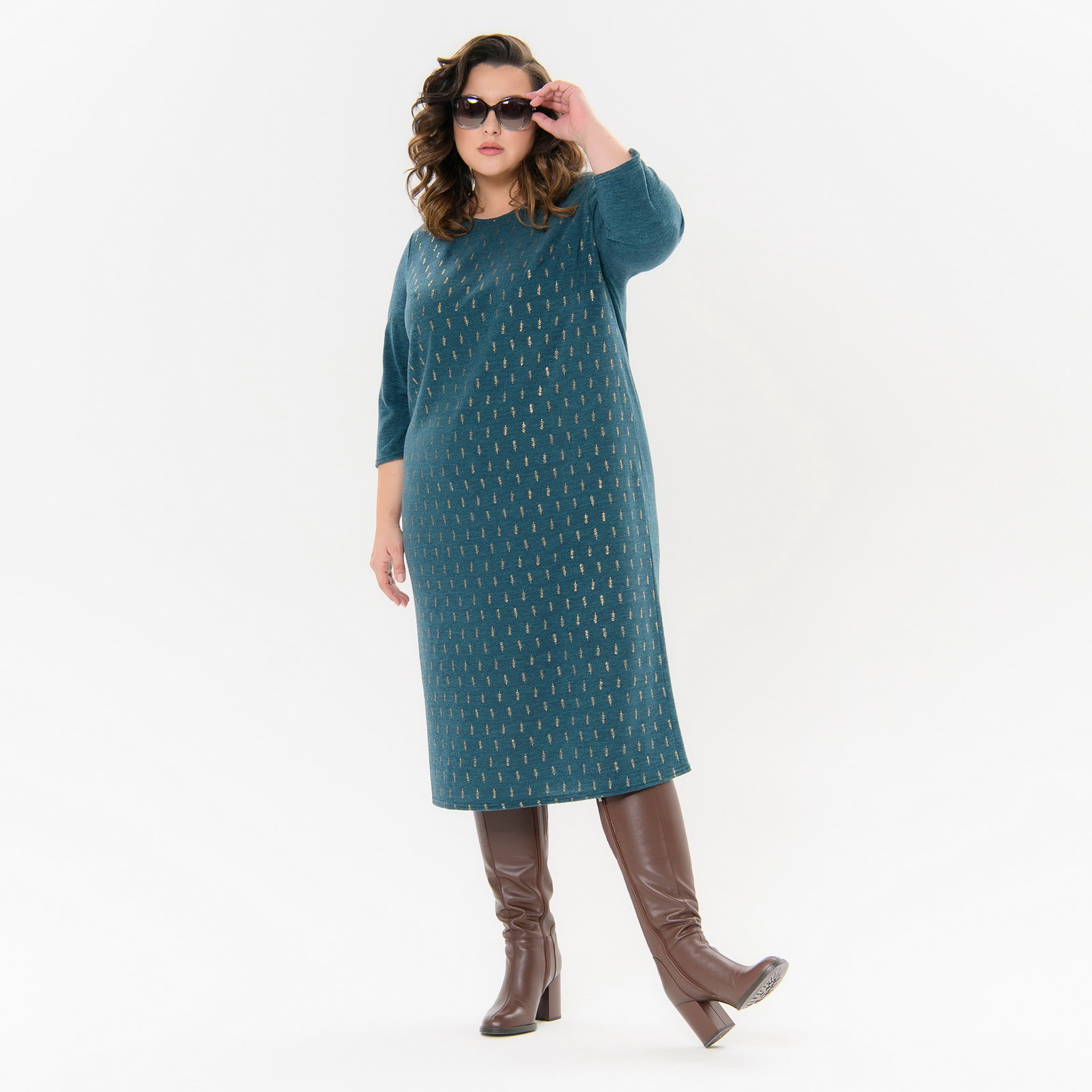 Платье полуприлегающего силуэта из джерси средней плотности, имитирующего ангору.