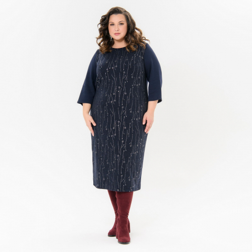 Платье полуприлегающего силуэта из джерси средней плотности, имитирующего ангору.