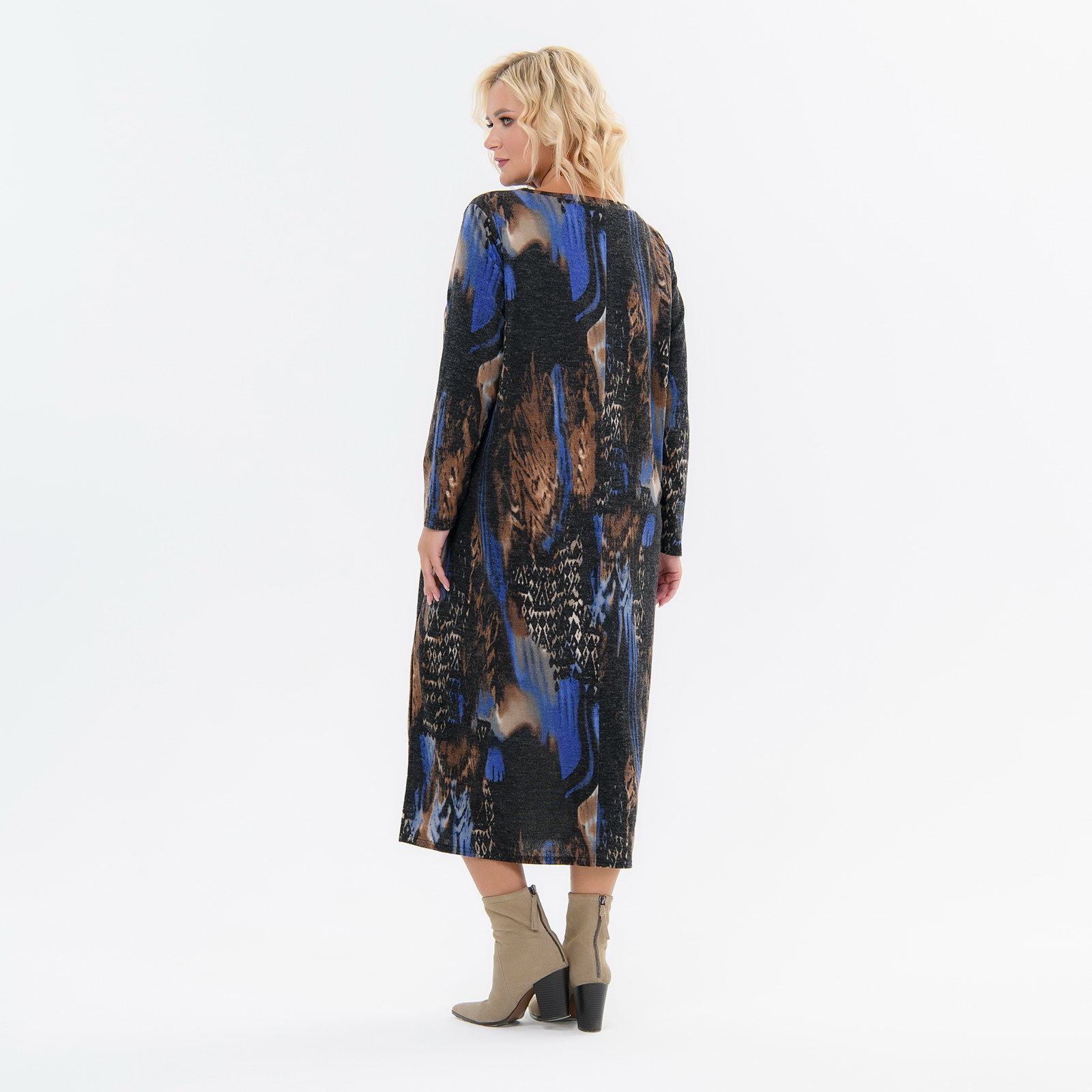 Платье миди с карманами и разрезом, силуэт "кокон", ангора, принт "фантазия" *