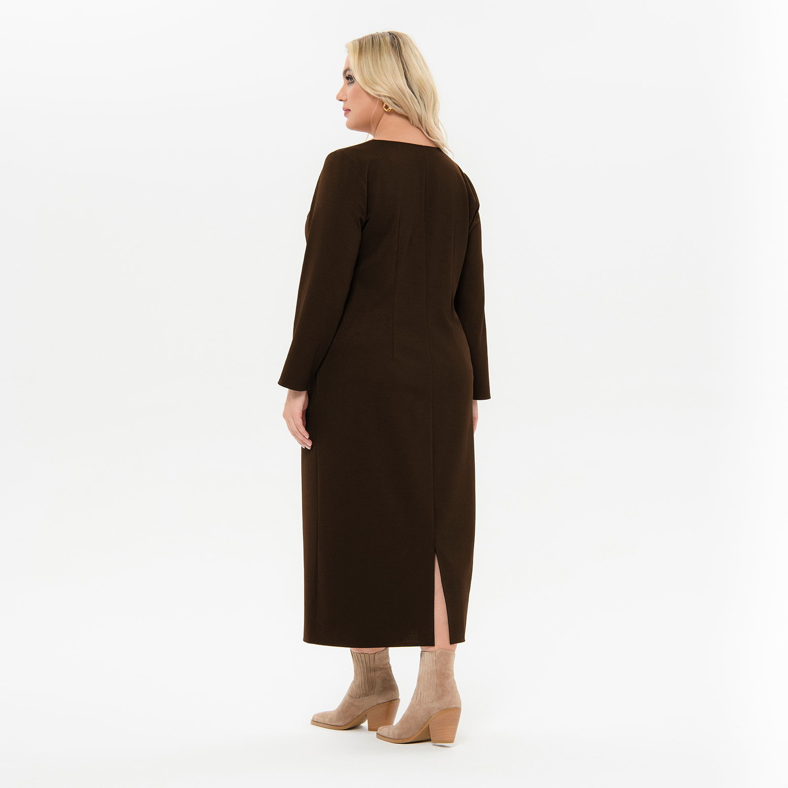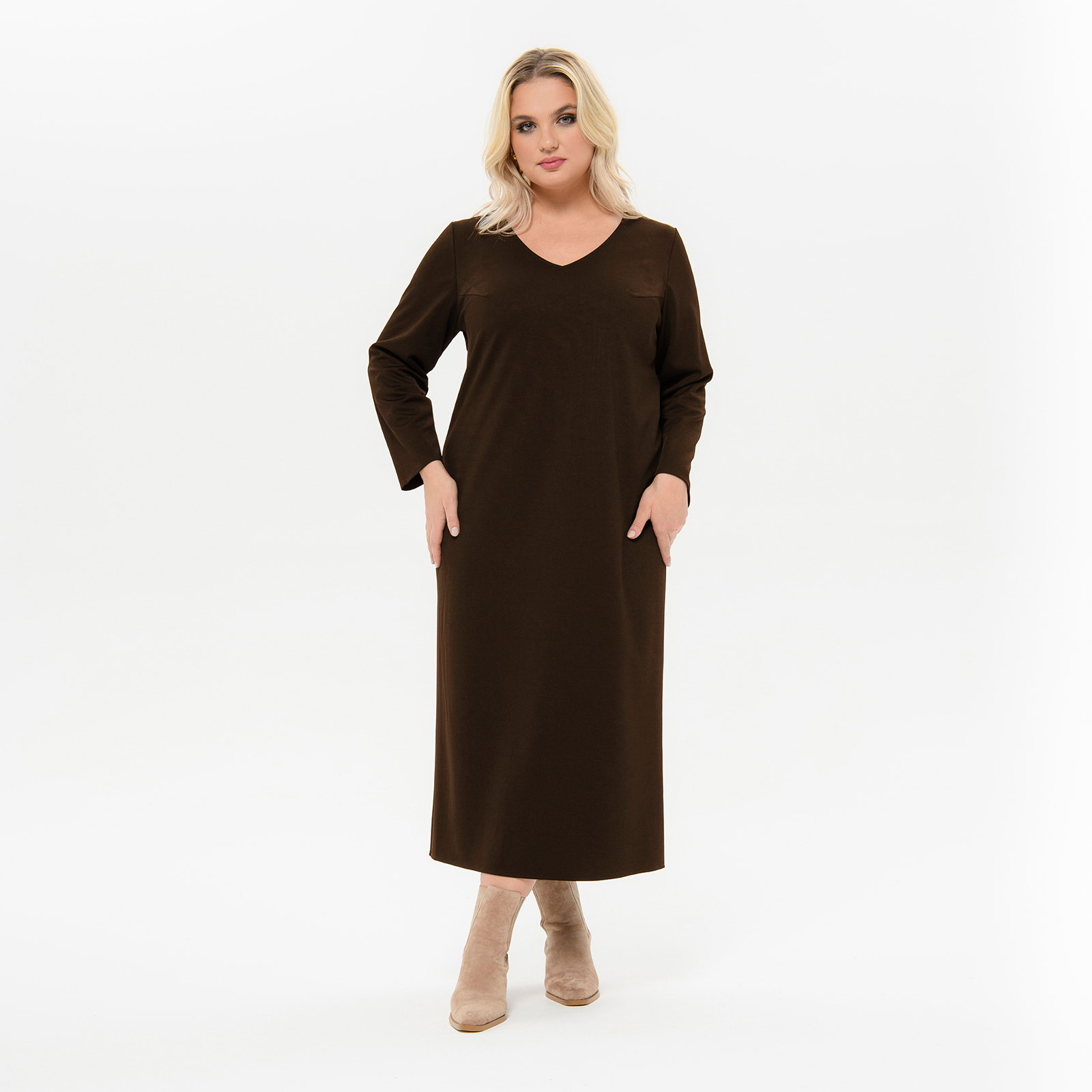 Платье миди с V - вырезом, джерси, цвет "шоколад"