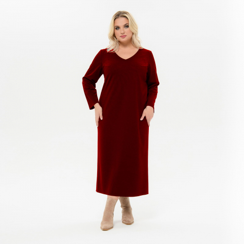 Платье миди с V - вырезом, из плательного крепа с эластаном, бордовое
