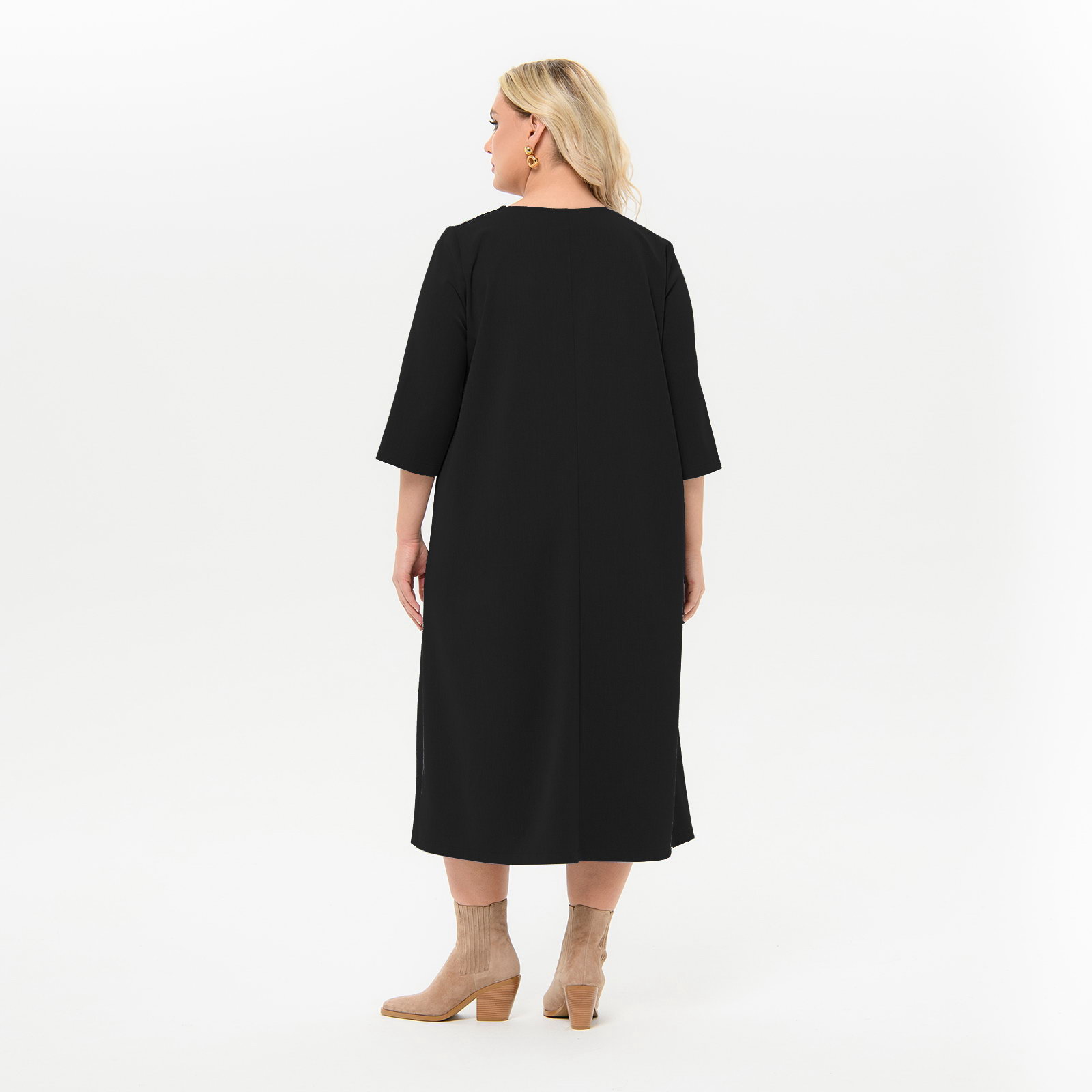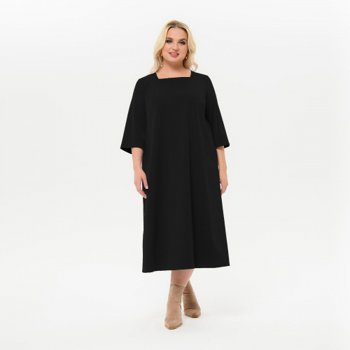 Платье миди с вырезом "каре", из костюмной ткани, цвет черный