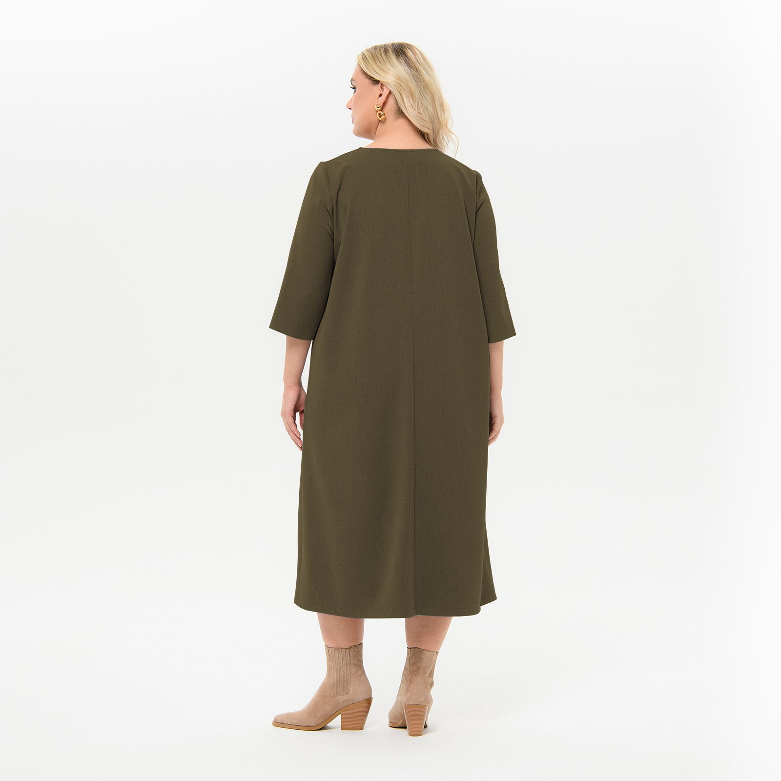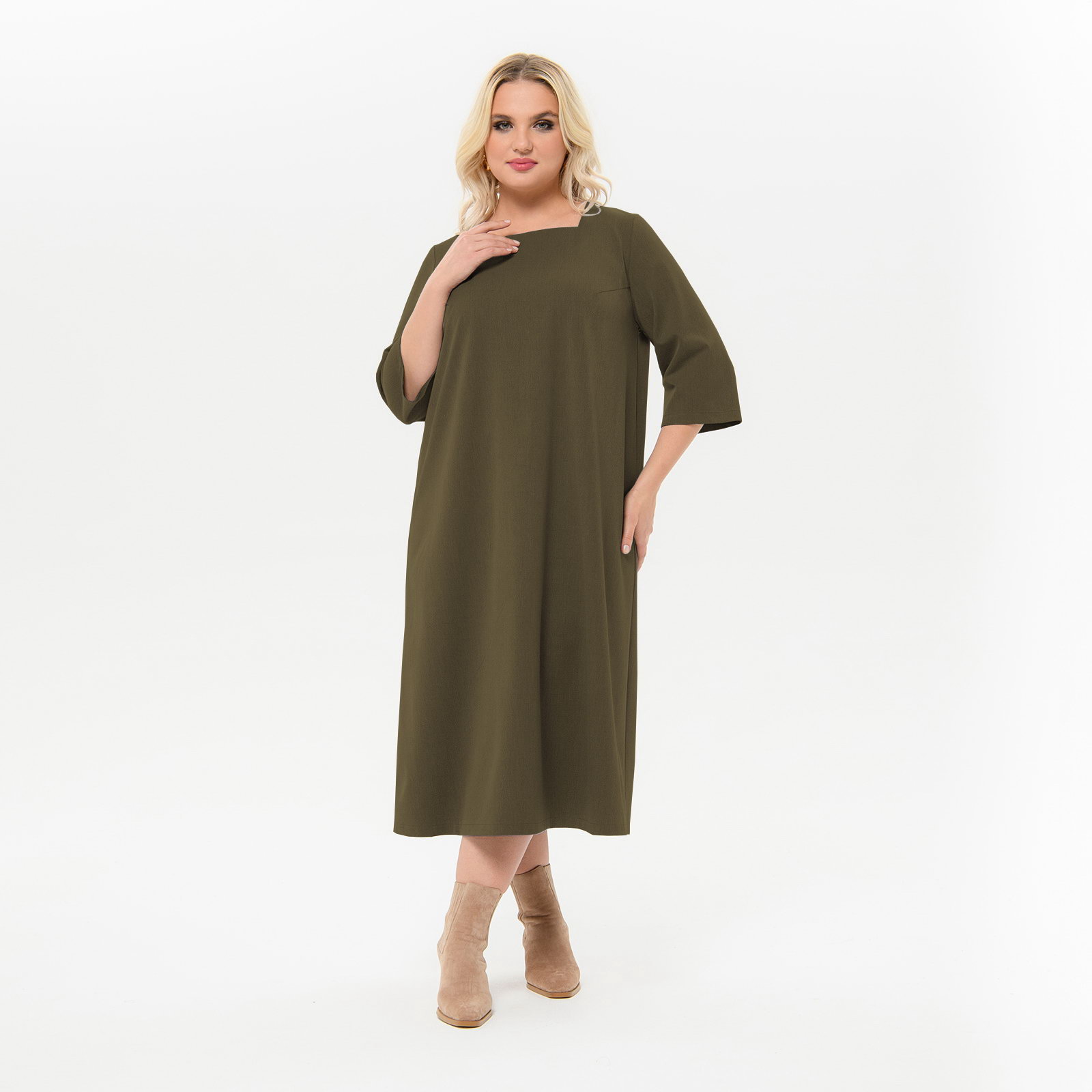 Платье миди с вырезом "каре", из костюмной ткани, цвет "оливково-коричневый"