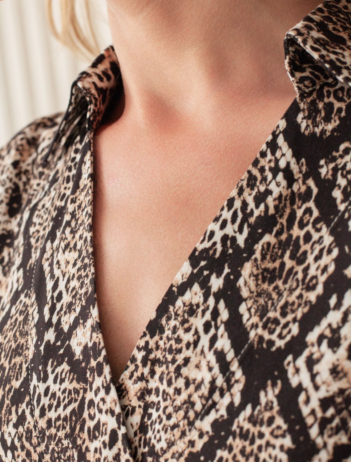 Женственное платье А-силуэта со змеиным принтом из премиальной вискозы — идеальное сочетание комфорта и стиля. Длина чуть ниже колена подчеркивает женственность, а отложной воротник добавляет элегантности. Репсовый пояс акцентирует талию, создавая гармоничный силуэт. Змеиный принт делает образ современным и дерзким. Мягкая вискозная ткань приятна к телу, не стесняет движений и отлично драпируется. Универсальная модель для офиса, свиданий и вечерних выходов.