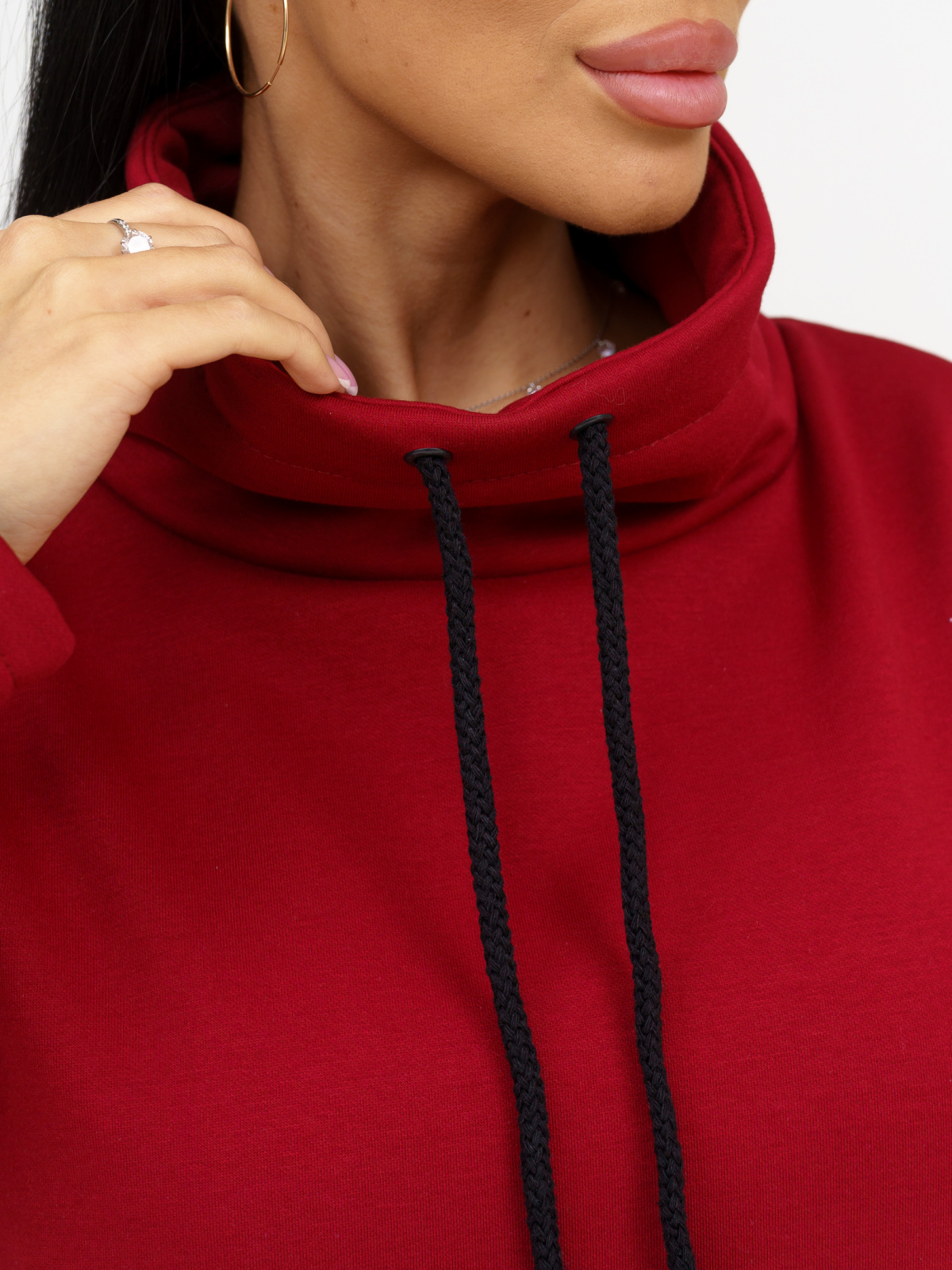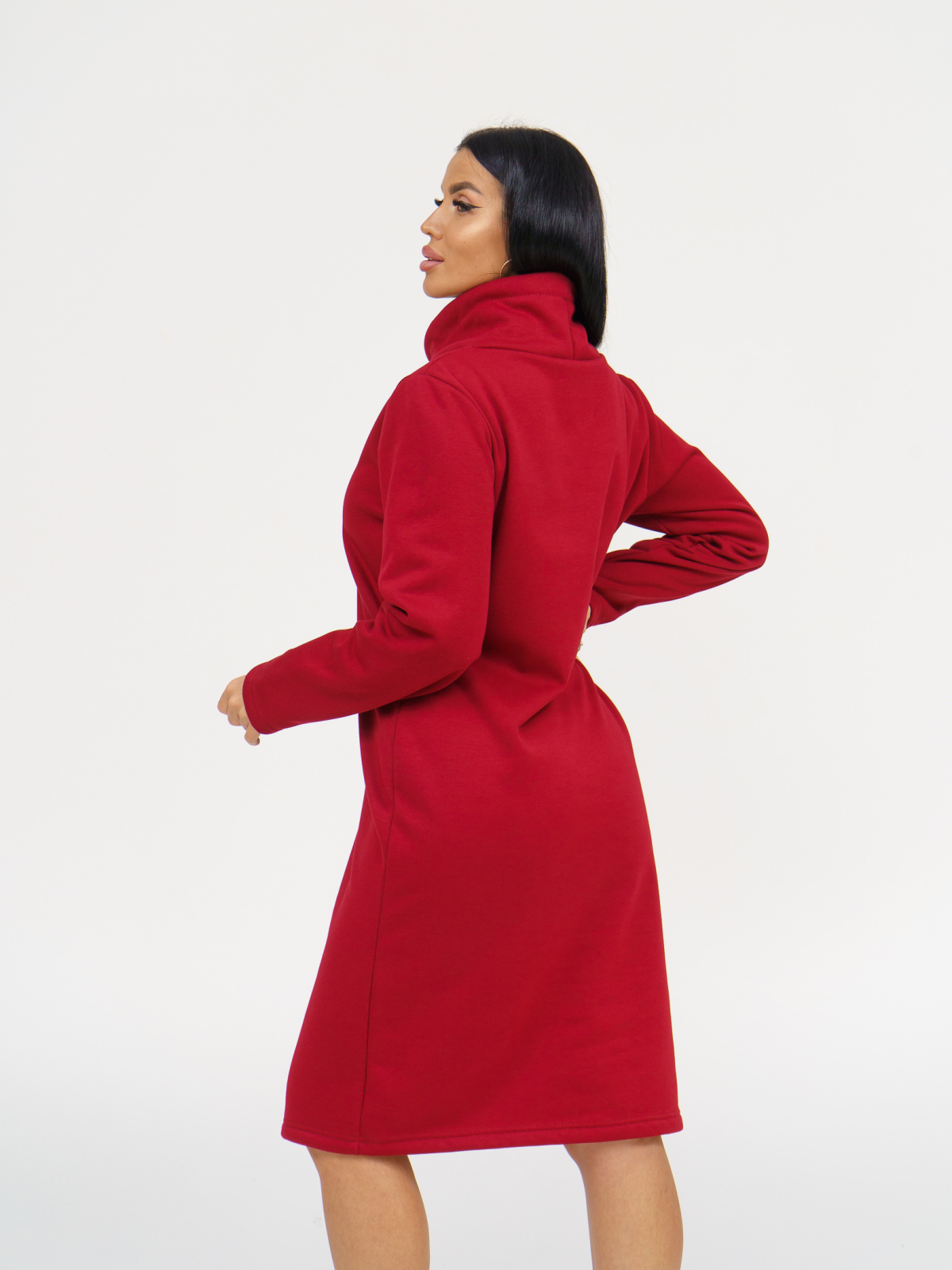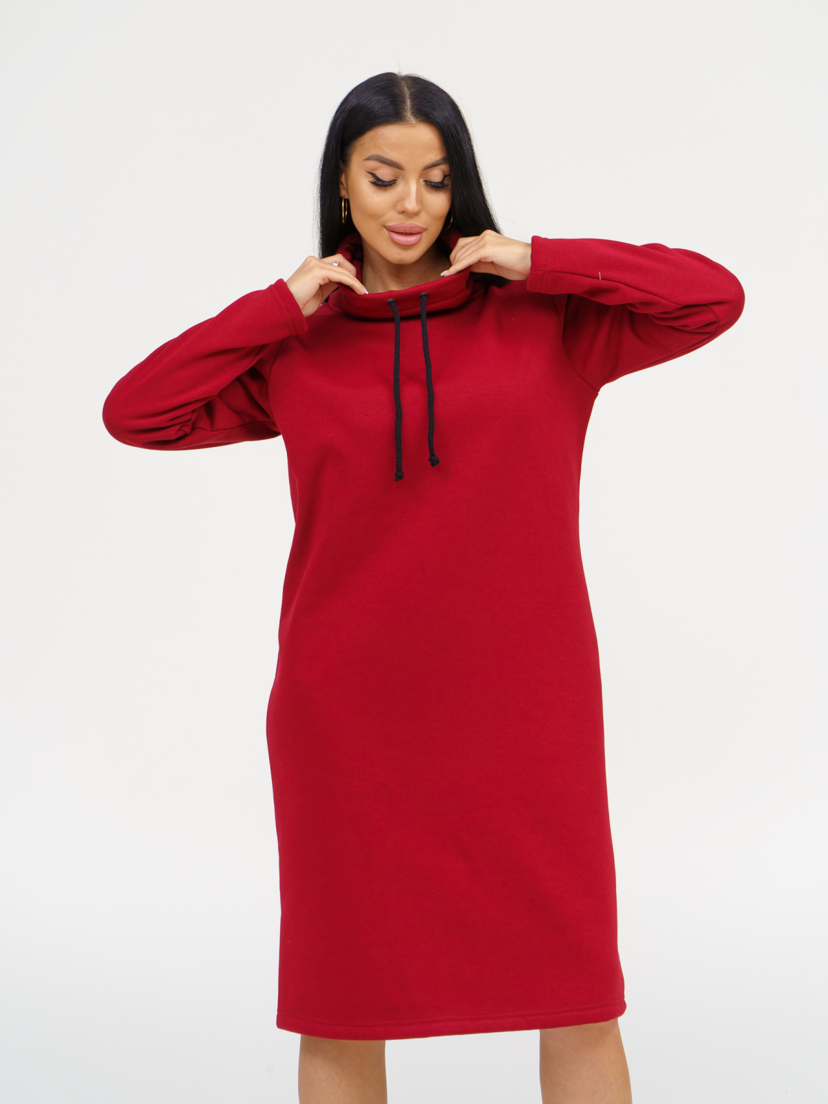 Платье утепленное с начесом-барашек имеет прямой крой, длинный рукав и удобный воротник-стойку, который защитит от ветра. Воротник стойка оформлен крупным шнурком без наконечников (обработан узлом).