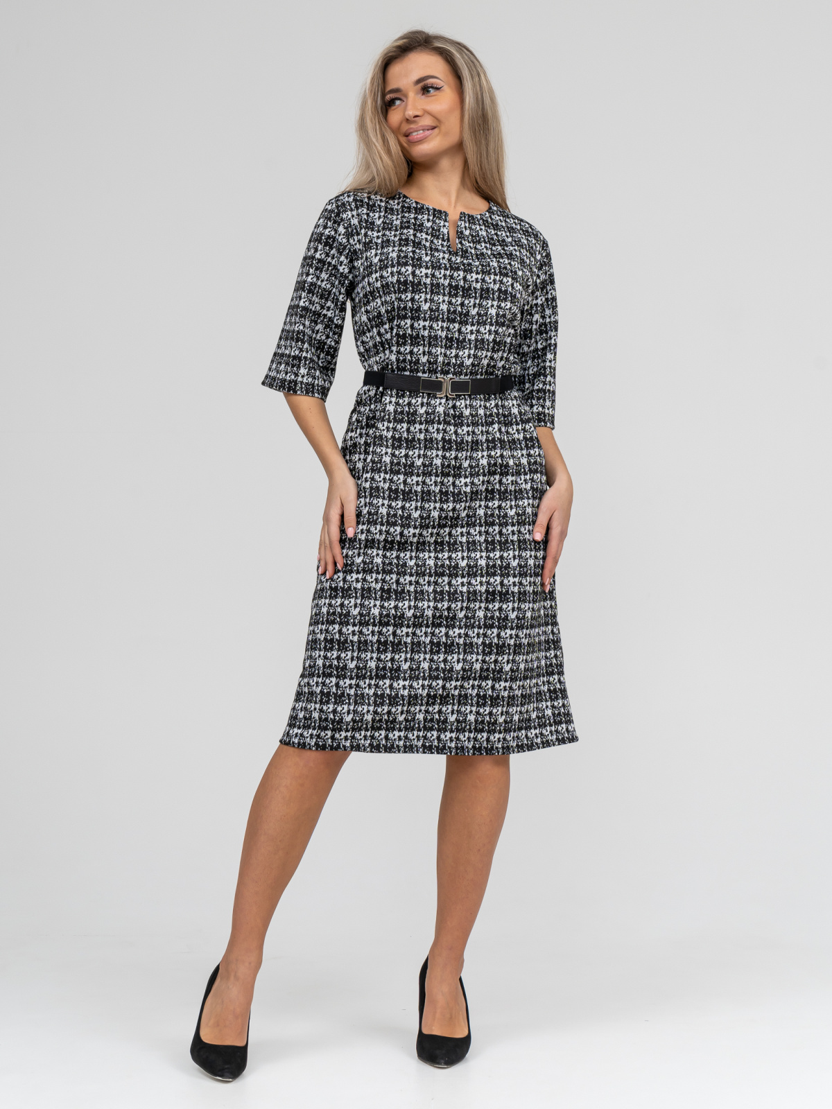 Это прекрасное платье сочетает в себе элегантность и сдержанность. Благодаря своему удлиненному крою и миди-длине, оно подойдет как для повседневного образа, так и для офисных деловых встреч.