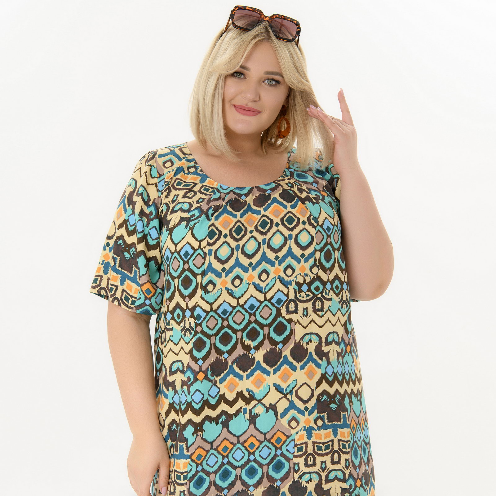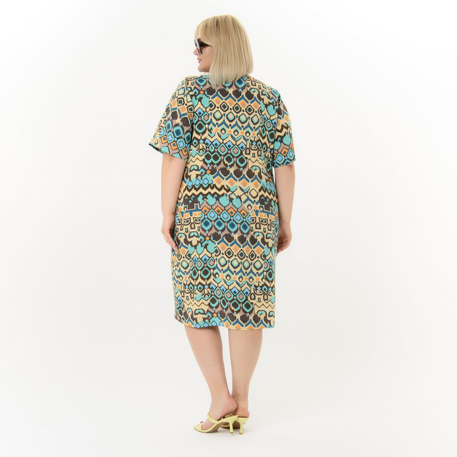Платье прямое из штапеля, принт этнический *