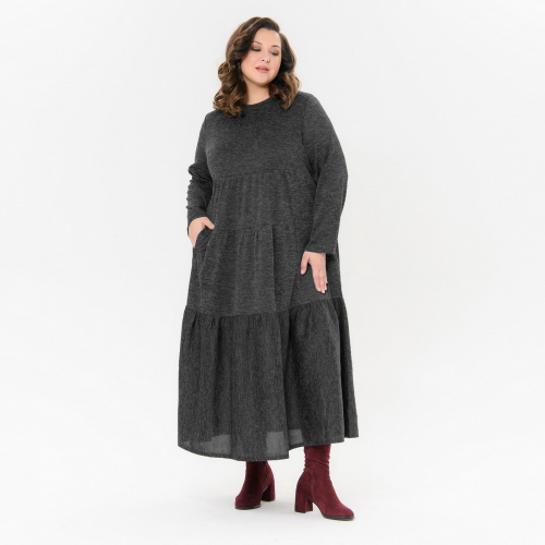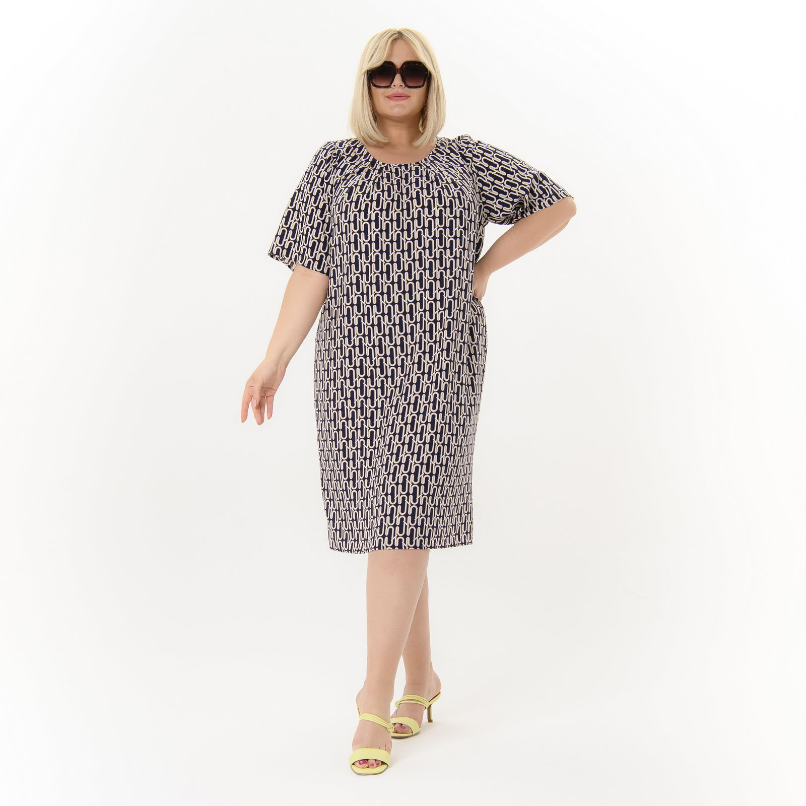 Платье прямое из вискозы. Вырез горловины округлый. с мягкими складочками. Рукав свободный.