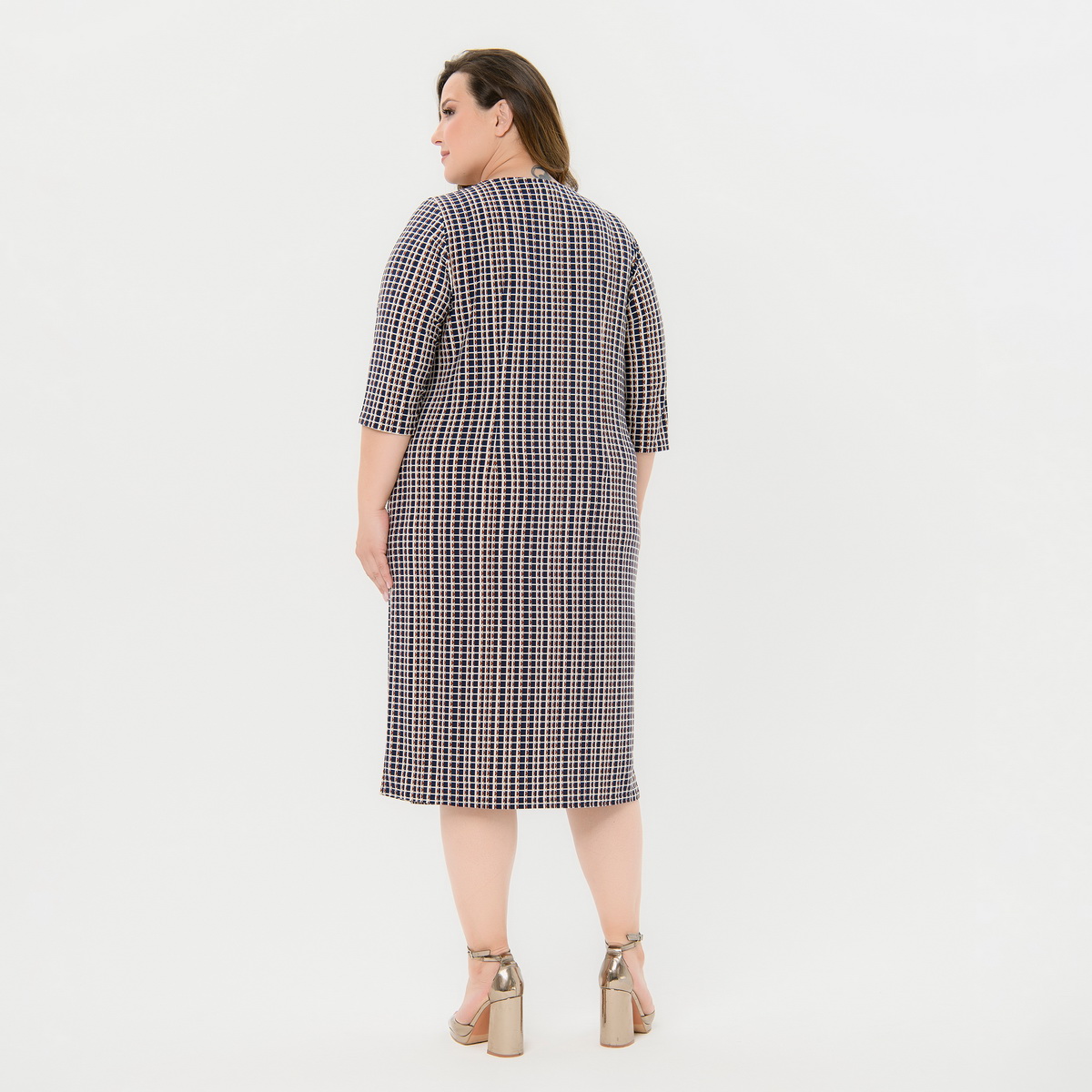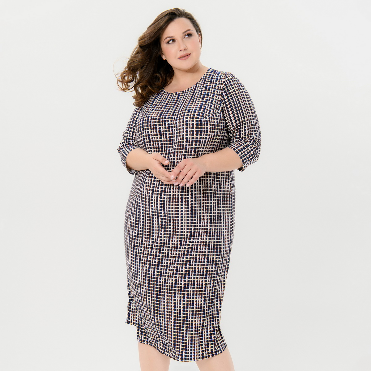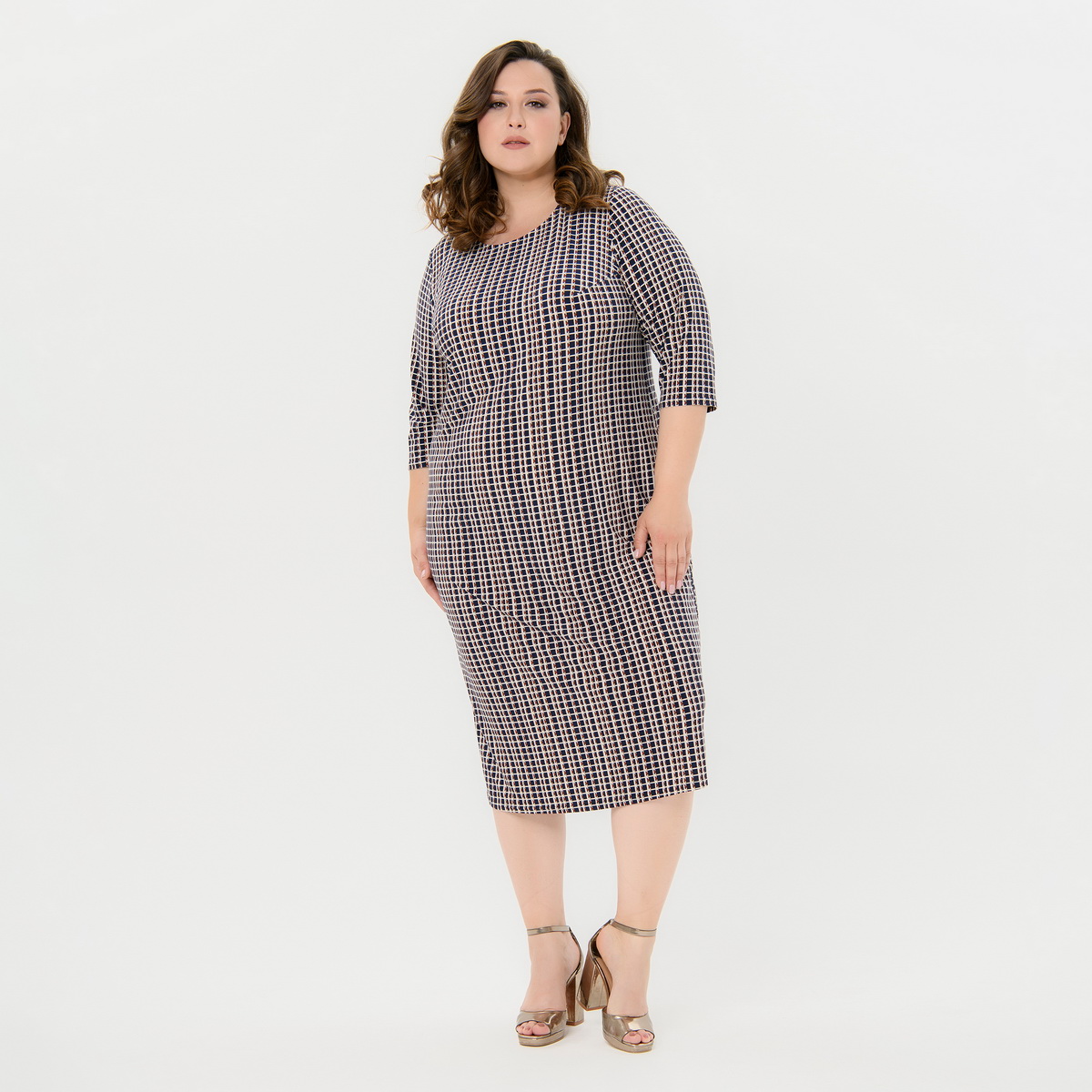 Платье базовое полуприлегающего силуэта из струящегося трикотажа "масло".  Комфортное, за счет мягкости ткани и отработанной конструкции. Рукав 3/4. Вырез горловину округлый.