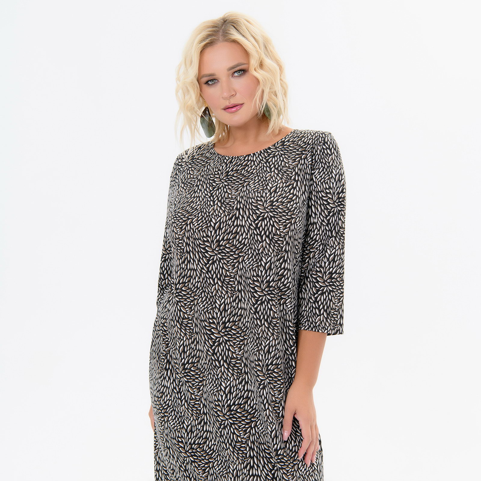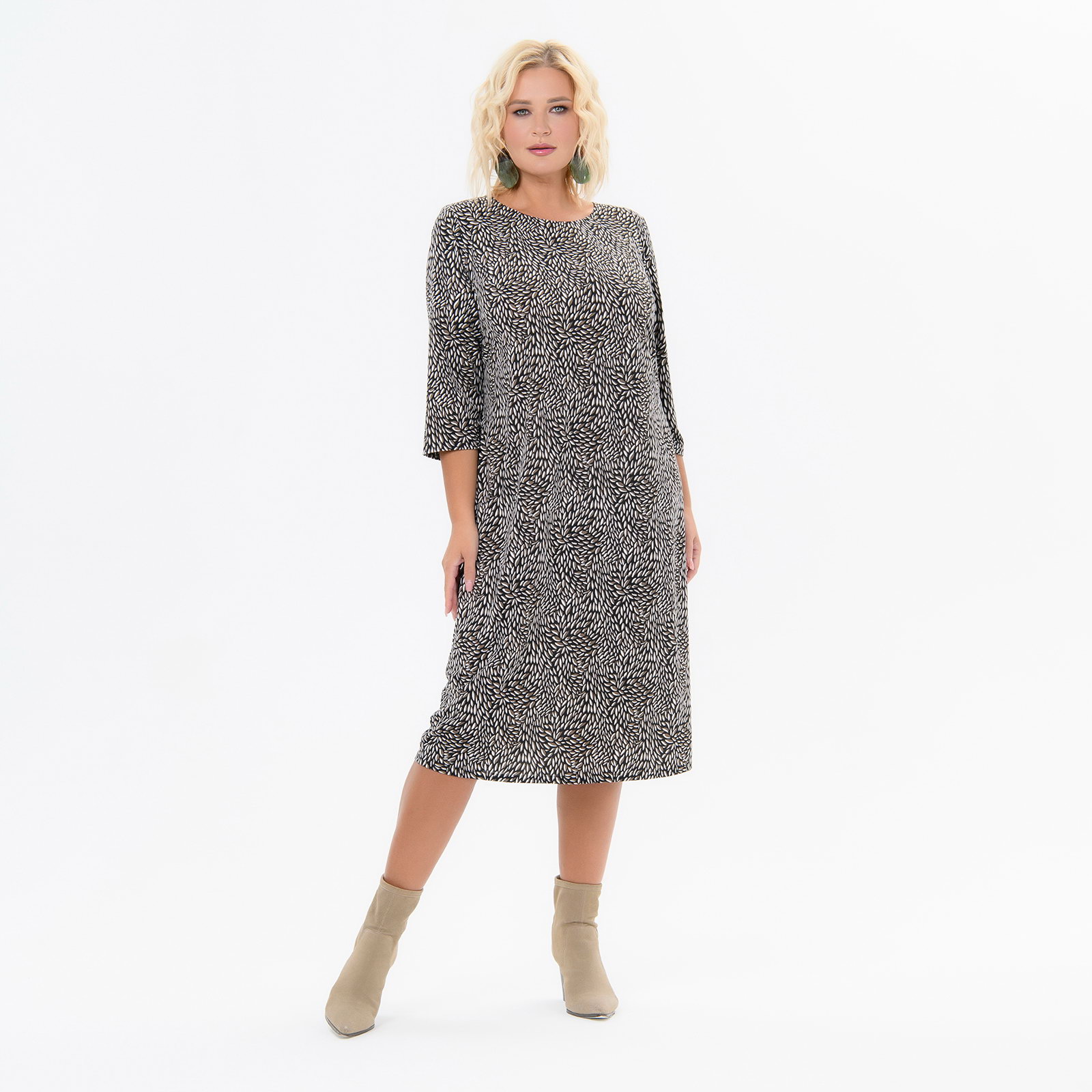 Платье базовое полуприлегающего силуэта из струящегося трикотажа "масло".  Комфортное, за счет мягкости ткани и отработанной конструкции. Рукав 3/4. Вырез горловину округлый.