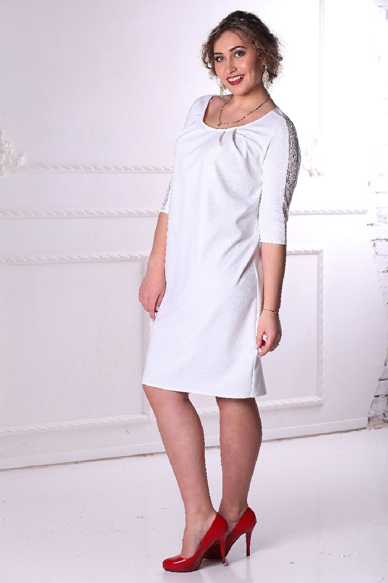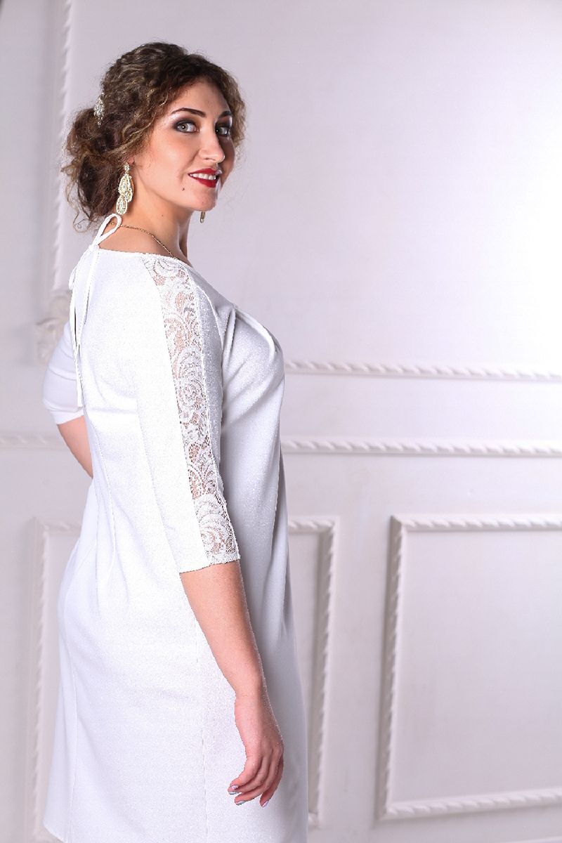 Классическое прямое платье из эластичного крепа, которое должно быть в гардеробе каждой женщины. Изысканность данному платью придает кокетливая  кружевная вставка по рукаву и плечевому шву.