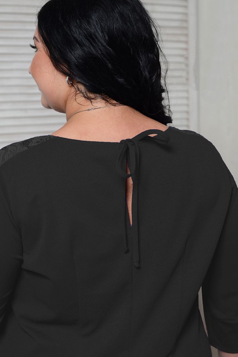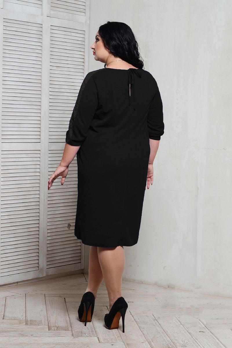 Классическое прямое платье из эластичного крепа, которое должно быть в гардеробе каждой женщины. Изысканность данному платью придает кокетливая  кружевная вставка по рукаву и плечевому шву.