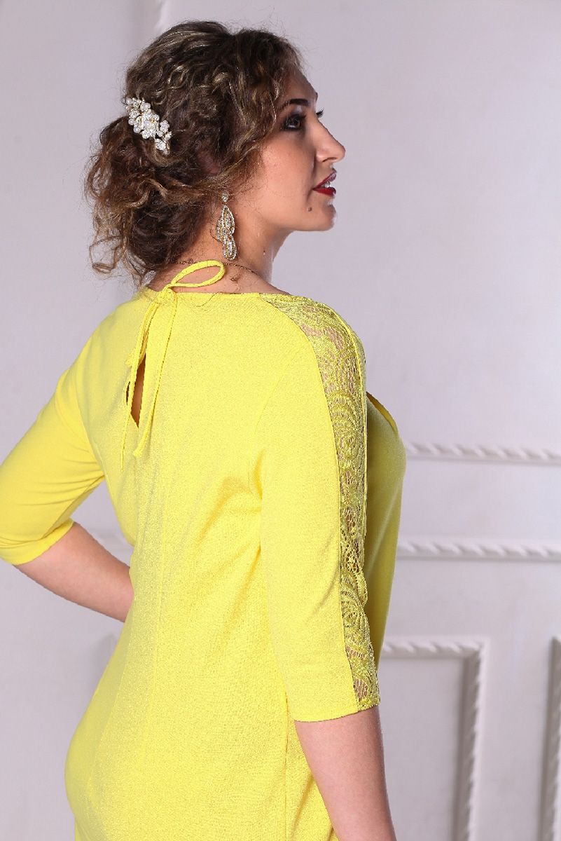 Классическое прямое платье из эластичного крепа, которое должно быть в гардеробе каждой женщины. Изысканность данному платью придает кокетливая  кружевная вставка по рукаву и плечевому шву.