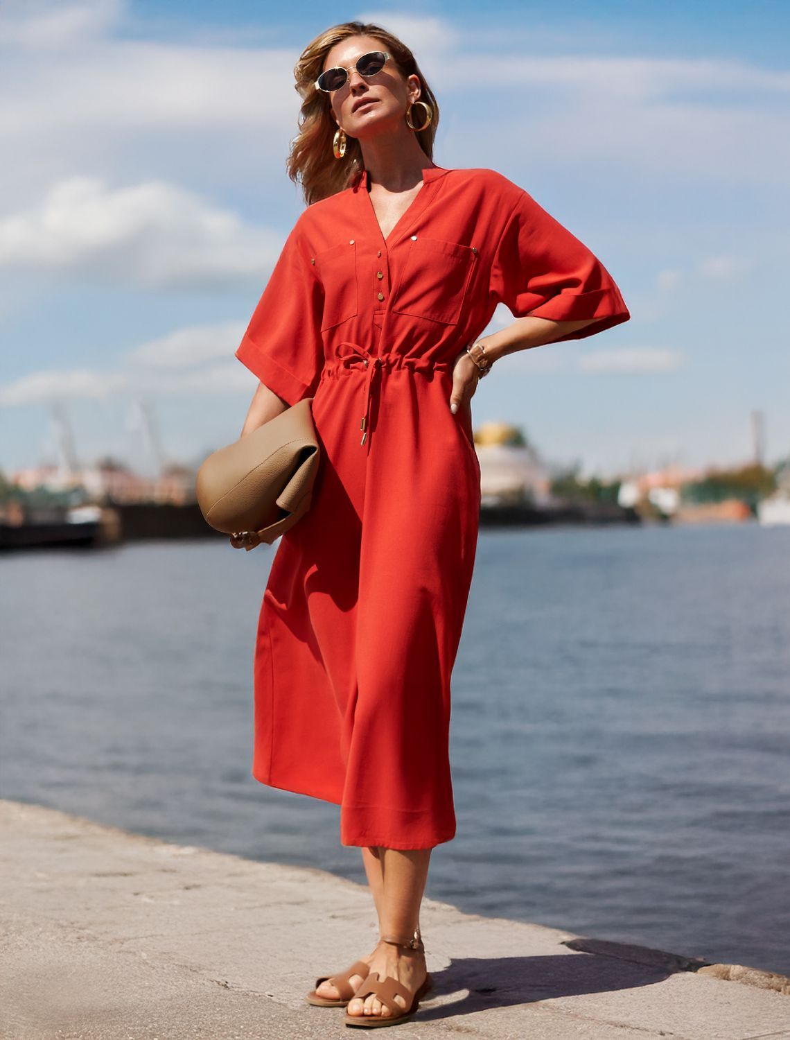 Платье-рубашка выполнено из плотного лиоцелла. Модель дополнена карманами и регулируемым поясом на талии. Романтичная пышная юбка великолепно драпируется и струится по ногам. В теплое время года ткань приятно охлаждает кожу. Добавление синтетических волокон в составе изделия, предотвращает сминаемостьи поддерживает формоустойчивость.