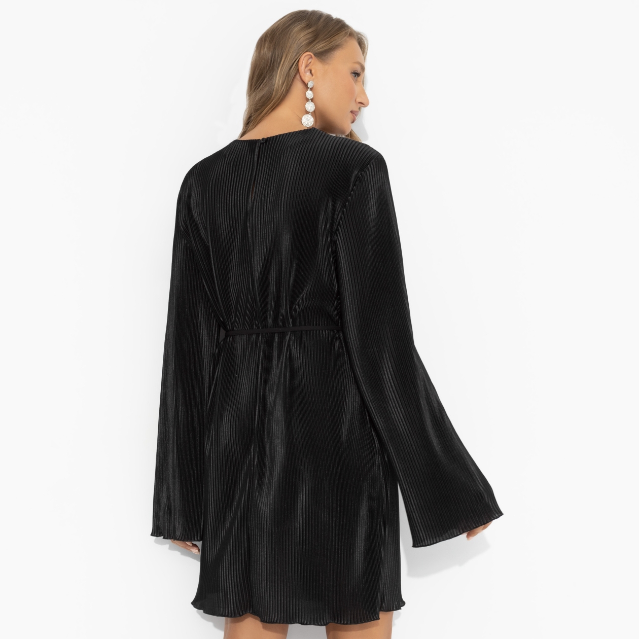 Платье-хит, в котором легко потерять счёт времени – и заставить других потерять голову. Она кружится в потоке мгновений – и всё внимание принадлежит ей. Свободный силуэт с поясом тонко подчёркивает талию и уверенность. Мягкий трикотаж «гофре» струится, переливается при каждом движении, подчеркивает осанку и уверенность. Платье со свободными рукавами на подплечниках.